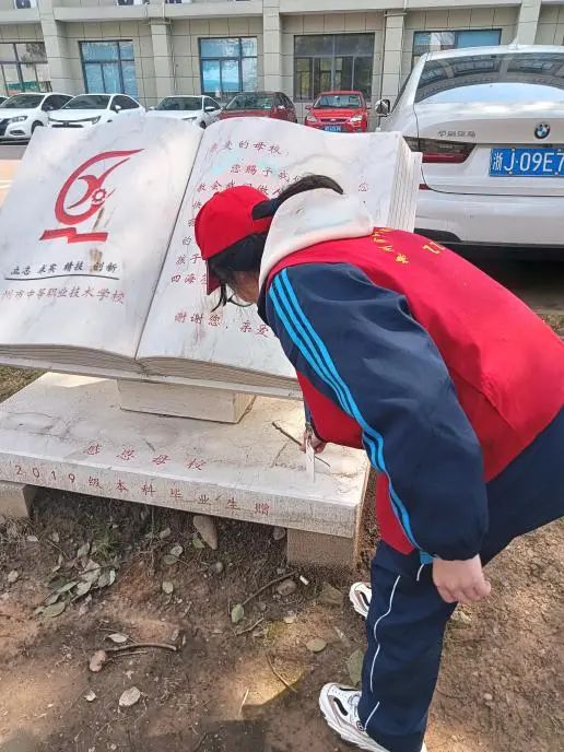 以前,看著別的值周生在自己的崗位上工作,心里真羨慕。穿戴著值周生的標志小紅帽紅馬甲的大部隊每天去打掃衛(wèi)生,真是無比自由且威風凜凜。