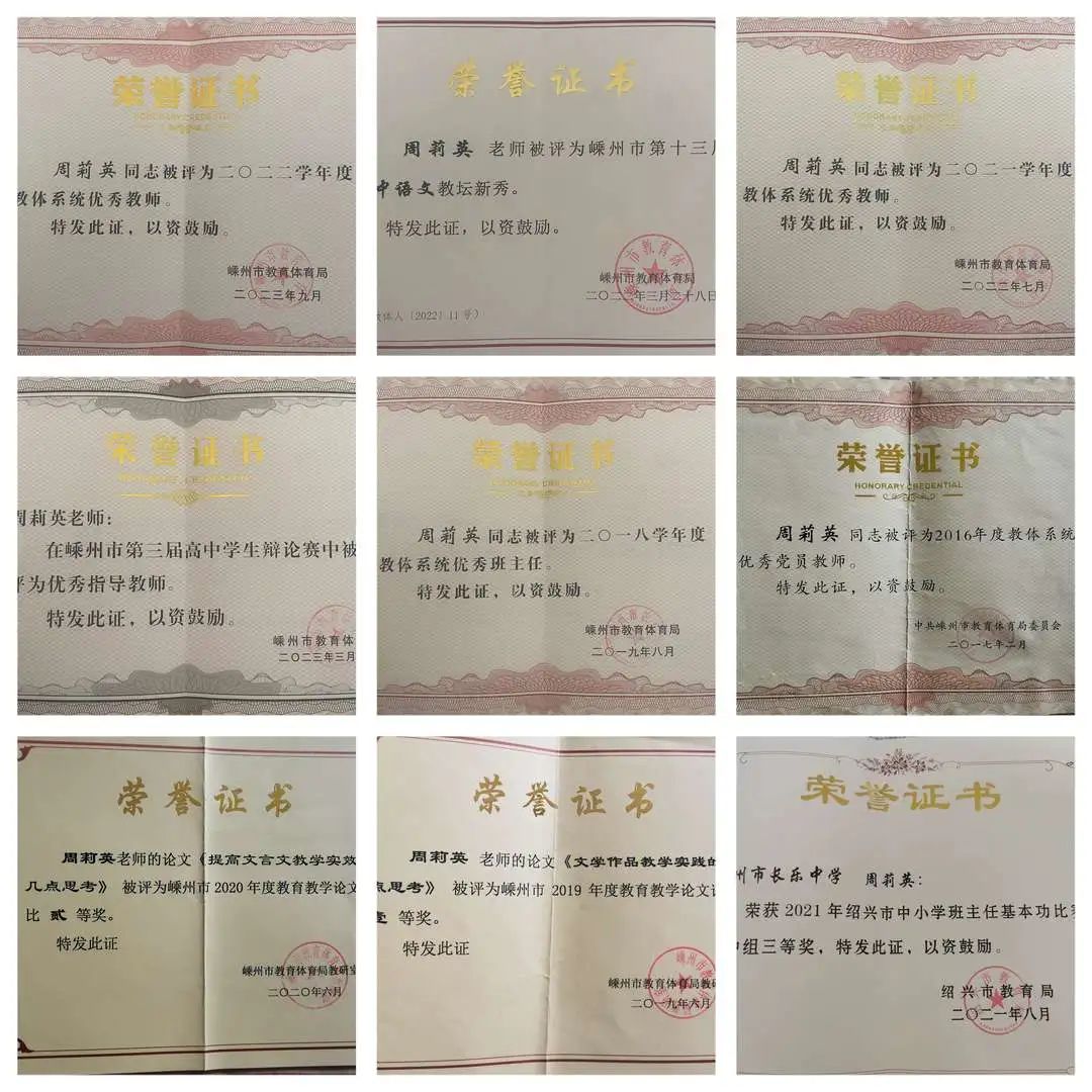 個(gè)人簡介:周莉英,中共黨員,嵊州市語文“教壇新秀”,嵊州市優(yōu)秀班主任,嵊州市教體系統(tǒng)優(yōu)秀黨員,嵊州市優(yōu)秀教師,嵊州市高中學(xué)生辯論賽優(yōu)秀指導(dǎo)教師。