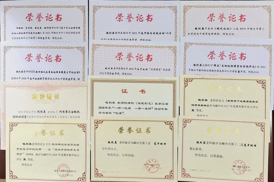 個(gè)人簡介:錢利英,中共黨員,嵊州市第十二屆高中地理教壇新秀,嵊州市第十屆學(xué)科帶頭人,第二屆“嵊州名師”,嵊州市優(yōu)秀團(tuán)干部,嵊州市關(guān)心下一代工作先進(jìn)個(gè)人,紹興市最美資助人,浙江省優(yōu)秀評卷教師。