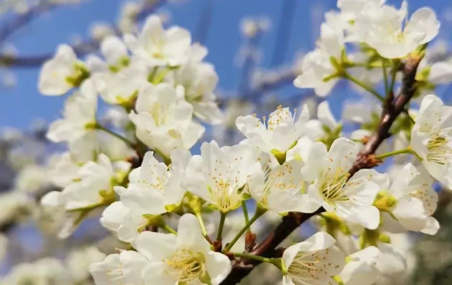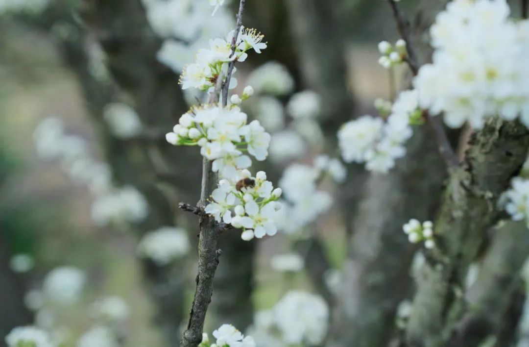 每一朵李花都有她自己的故事,或飄落,或含苞待放,亦或昂掛枝頭.......花開成景,花落成詩,密密匝匝地將喜悅鋪滿整個(gè)山頭,天地間充斥著生的豪情,風(fēng)里夢(mèng)里,全是不輕易言敗的生命力,流淌著一種“成為更好的自己”的自信。