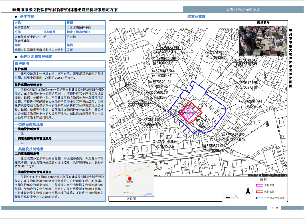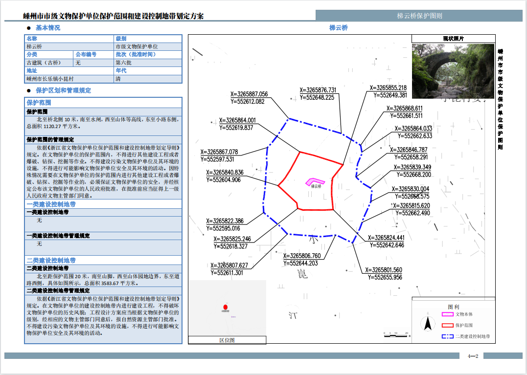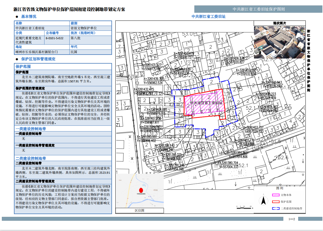 根據(jù)《中華人民共和國文物保護法實施條例》《浙江省文物保護單位保護范圍和建設(shè)控制地帶劃定辦法》《浙江省文物局關(guān)于規(guī)范市(縣)級文物保護單位建設(shè)控制地帶劃定工作的通知》等文件精神,對省級文物保護單位中共省工委舊址、張伯岐故居、嵊州市級文物保護單位袁雪芬故居、梯云橋等四處文物保護單位劃定了保護范圍和建設(shè)控制地帶,現(xiàn)將保護范圍和建設(shè)控制地帶予以公示。