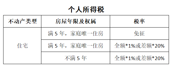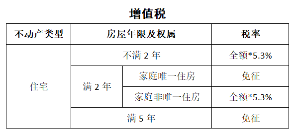 產(chǎn)權(quán)證或契稅發(fā)票填發(fā)日期滿2年的免征,未滿2年征收全額的5.3%。