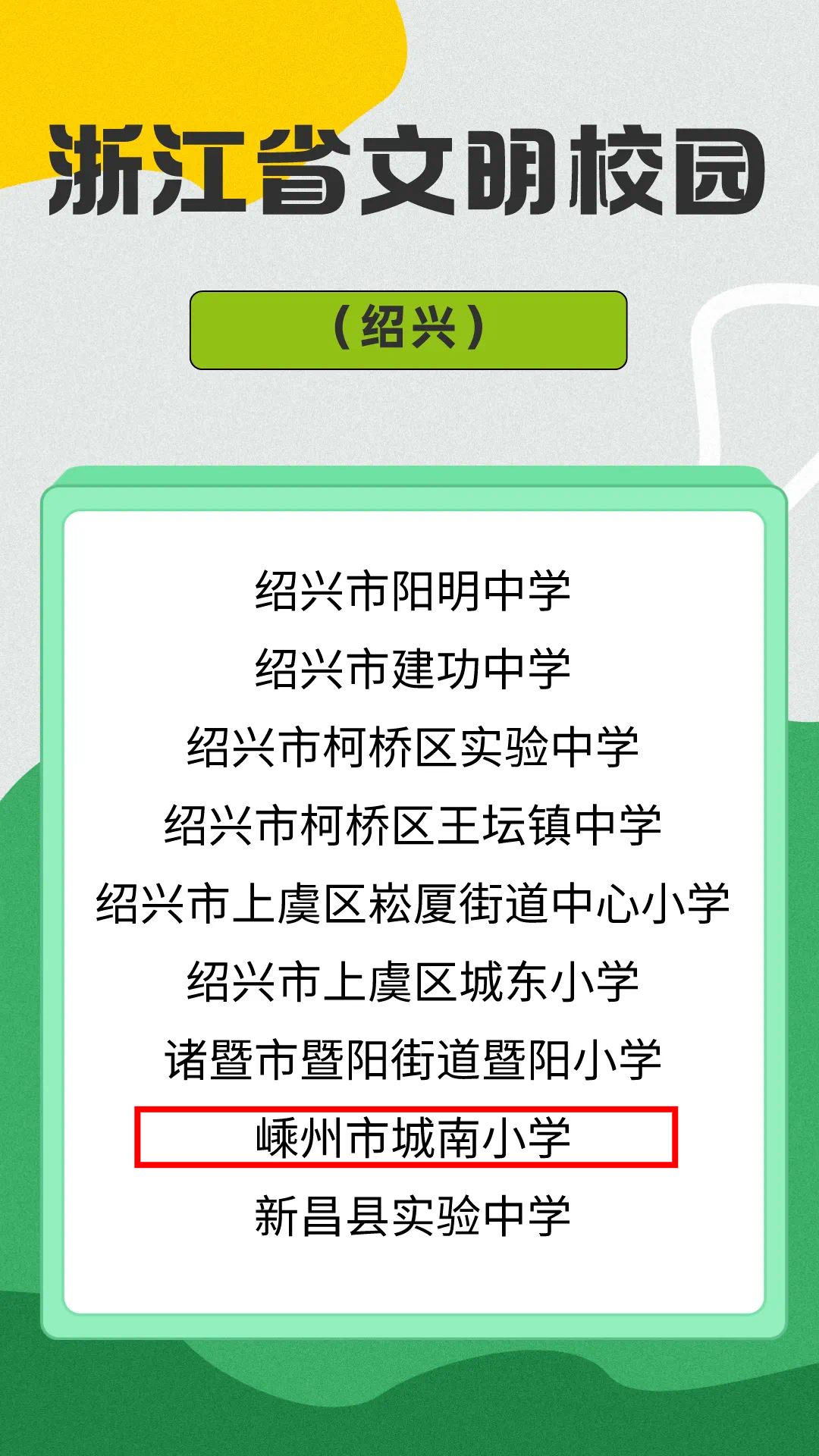 嵊州市城南小學(xué)上榜!