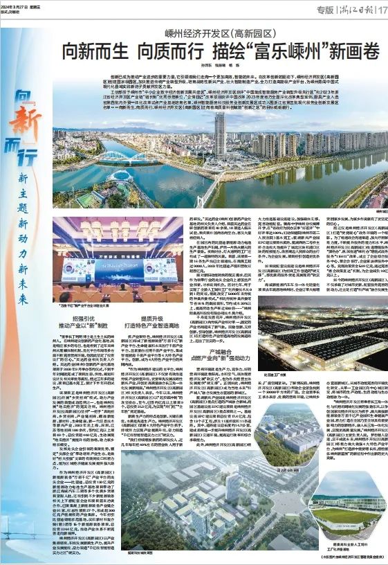 浙江日?qǐng)?bào)專版 | 嵊州經(jīng)濟(jì)開發(fā)區(qū)(高新園區(qū)):向新而生 向質(zhì)而行 描繪“富樂(lè)嵊州”新畫卷