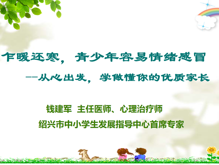 為應(yīng)對(duì)青少年情緒感冒高發(fā)期,知行父母成長(zhǎng)學(xué)堂邀請(qǐng)紹興市中小學(xué)生發(fā)展指導(dǎo)中心首席專(zhuān)家,心理治療師,主任醫(yī)師錢(qián)建軍為家長(zhǎng)送上“貼心”指南!