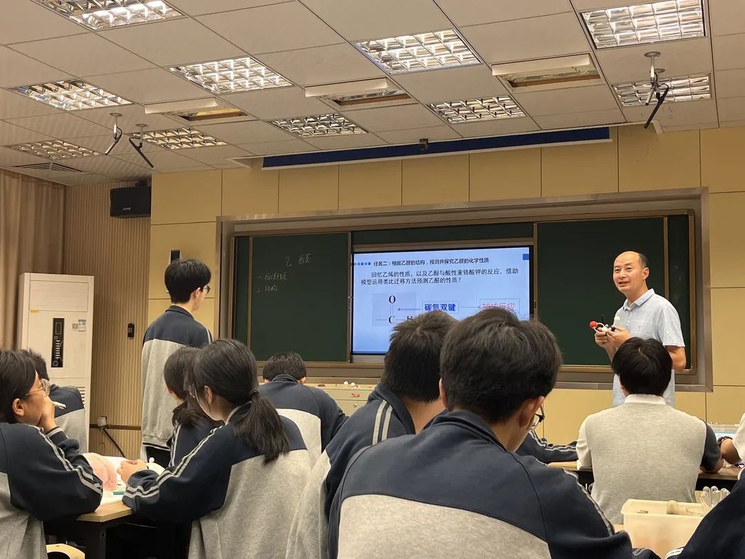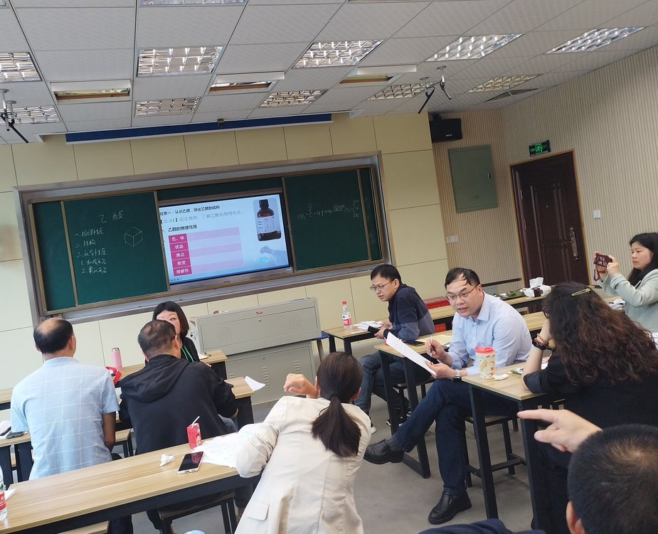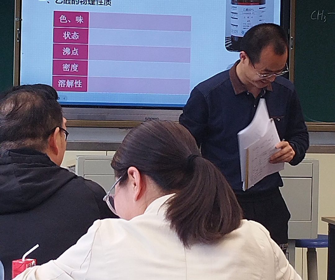 活動二:長樂中學張華權老師展示了《有機化學》中《乙醛》的課堂教學。妙趣橫生的引入--動手搭構模型--預測物質性質--實驗探究預測結果--共建思維模型--課堂檢測教學效果。張老師用扎實的教學功底結和新穎的教學設計給老師們呈現(xiàn)了一節(jié)高品質、高效率的示范課。部分教師對本節(jié)課進行了點評,對張老師的課都給予了高度評價,同時也提出了自己的寶貴意見,實現(xiàn)了“教-學-評”一體化,讓教師在“教”中反思“學”,在“學”中反思“評”,讓教學效率更上一層樓。