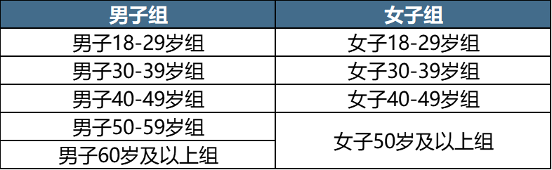 (二)鐵人三項(xiàng)賽個(gè)人組按年齡組分為: