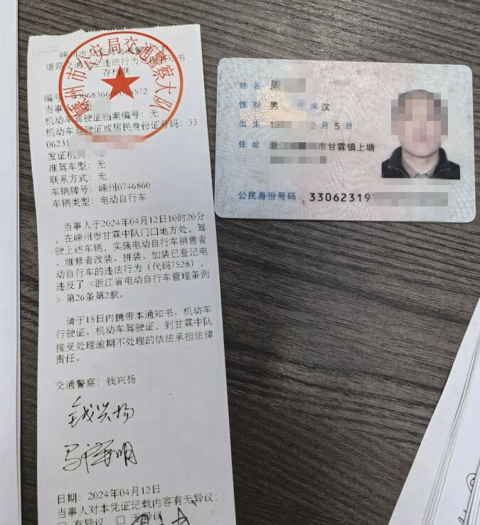 4月12日上午,甘霖中隊(duì)查獲周某有銷售、維修、改裝、拼裝、加裝已登記電動(dòng)自行車的違法行為,處以5000元的行政處罰。