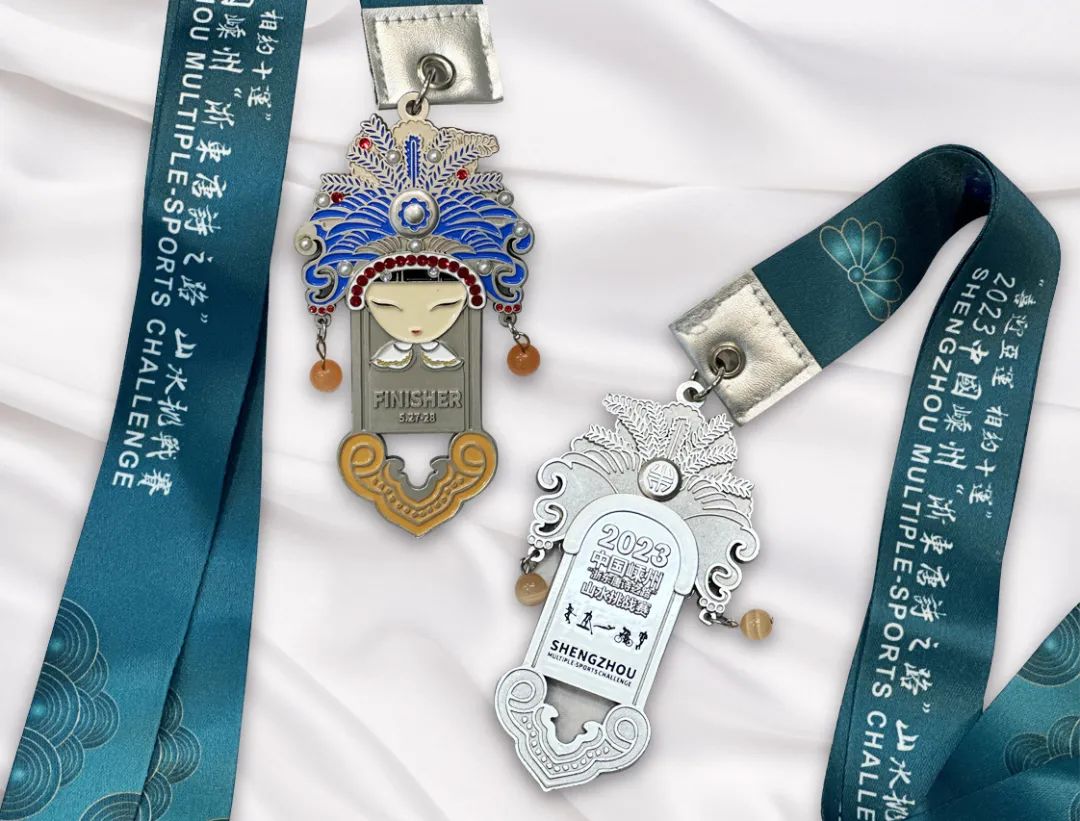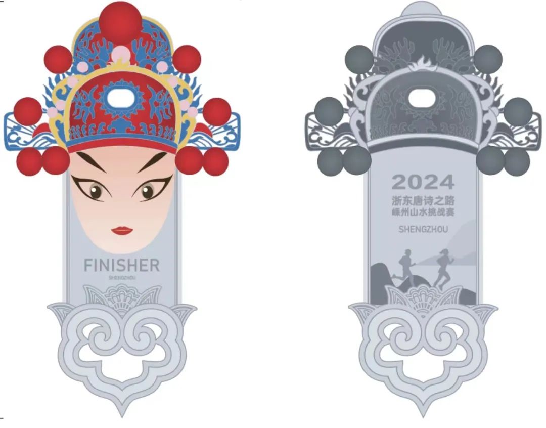 本屆賽事的獎(jiǎng)牌設(shè)計(jì)特色,與前三屆嵊州鐵人三項(xiàng)賽完賽獎(jiǎng)牌的越劇小生、花旦、女子鳳冠形象一脈相承,體現(xiàn)出鮮明的越劇元素。