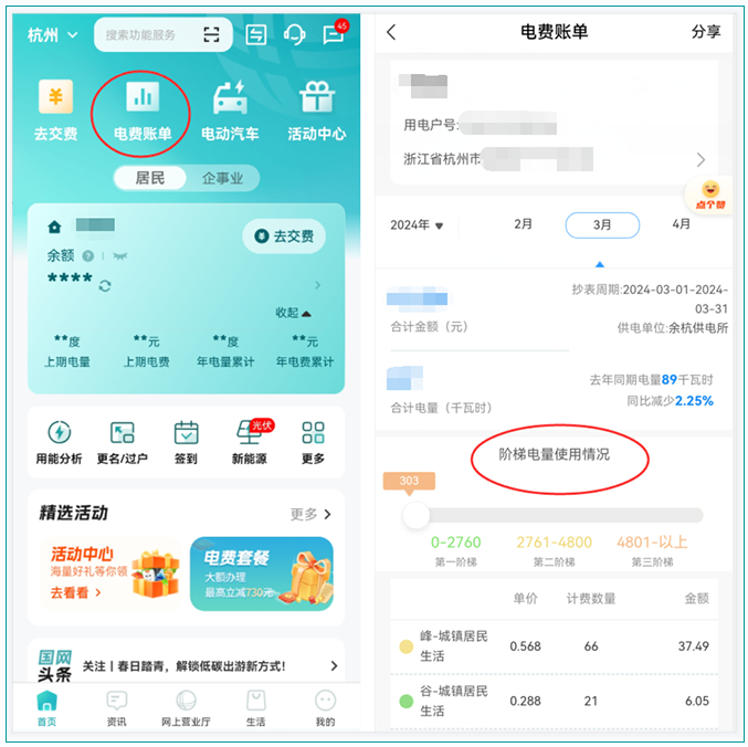 想知道你家的用電量現(xiàn)在處于哪一個階梯嗎?網(wǎng)上國網(wǎng)App首頁點擊【電費賬單】就可以查看。