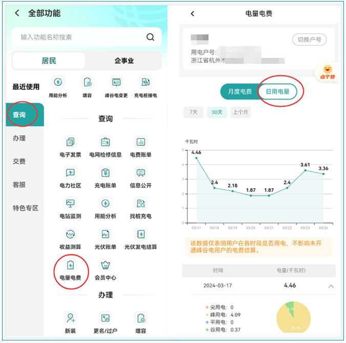 網(wǎng)上國網(wǎng)App首頁點擊【更多】-【查詢】-【電量電費】,選擇【日用電量】,就能看到近30天的日用電量,哪天電量異常一下子就能查到。