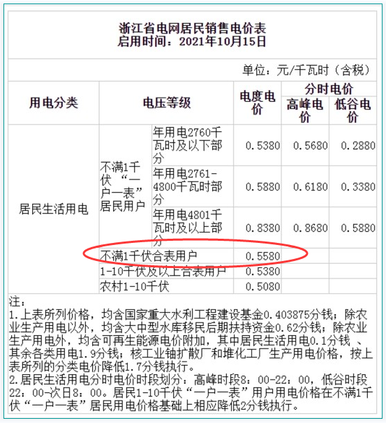 家里沒有開通峰谷電的小伙伴,電價標(biāo)準(zhǔn)看這個↓