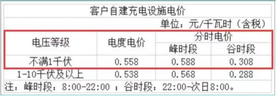 居民自建充電設(shè)施電價不滿1千伏的電價為0.558元/千瓦時。