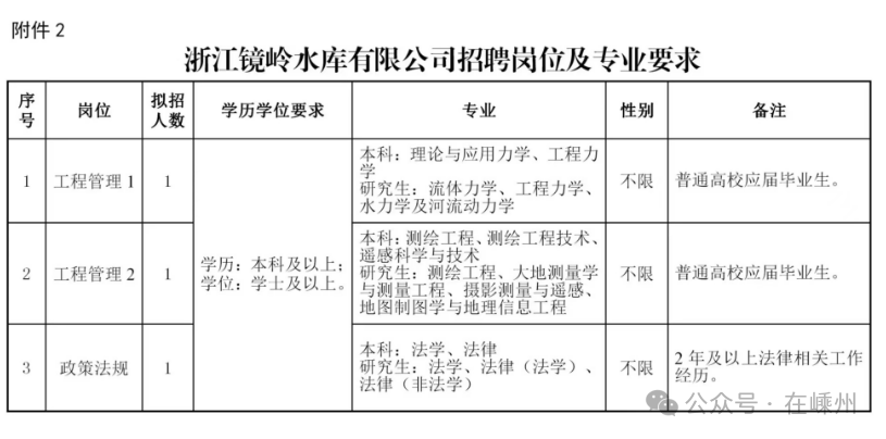 因工作需要,經研究,浙江鏡嶺水庫有限公司決定面向社會公開招聘工作人員。現將有關事項公告如下: