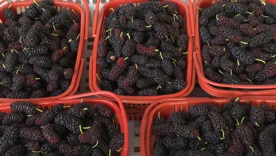 今年桑果采摘時(shí)間比往年提前了五天左右,產(chǎn)量、質(zhì)量都相當(dāng)好,特別是臺灣長果都比往年好多了,特別到了“五一”期間,采摘的游客會到達(dá)高峰,質(zhì)量、產(chǎn)量都會到達(dá)高峰。