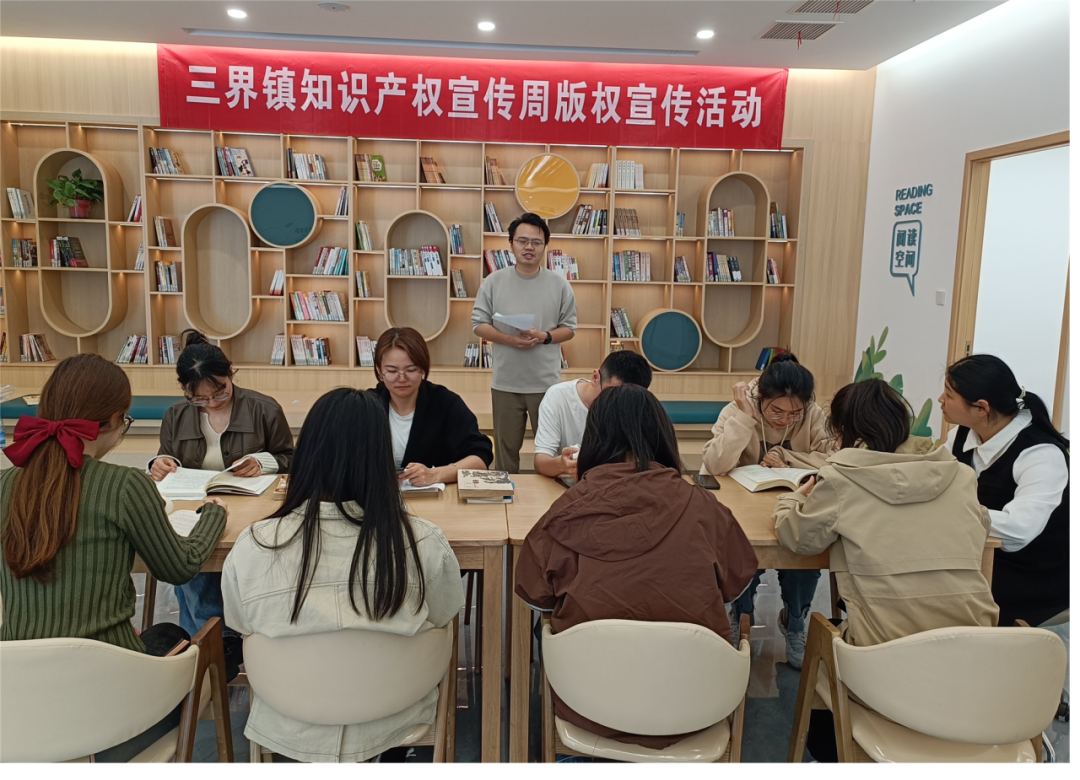 嵊州市三界鎮(zhèn)開(kāi)展圖書(shū)分享活動(dòng),活動(dòng)結(jié)合“知識(shí)產(chǎn)權(quán)日”版權(quán)保護(hù)相關(guān)內(nèi)容,組織黨員干部學(xué)習(xí)《中國(guó)共產(chǎn)黨紀(jì)律處分條例》和《網(wǎng)絡(luò)知識(shí)產(chǎn)權(quán)法研究》等書(shū)籍和手冊(cè),一起從中學(xué)習(xí)法律知識(shí),進(jìn)一步提升遵紀(jì)守法意識(shí)。