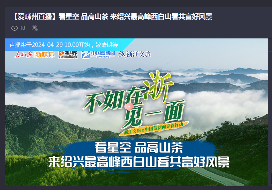 明天上午10點,人民日報、中國藍新聞、浙江文旅、愛嵊州APP、三美嵊州等平臺都將關(guān)注這里。