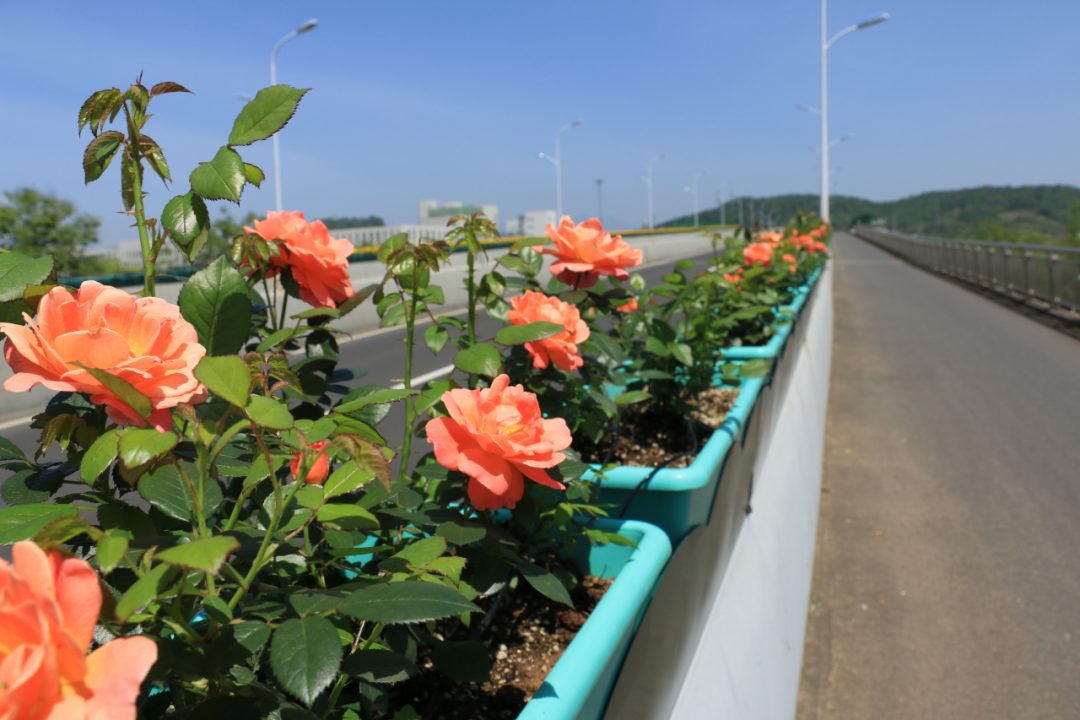 今年我市首次引入“高架月季”進(jìn)行栽種,對(duì)楊港路與芷湘路交叉口、四海路交叉口立交兩側(cè)花箱進(jìn)行了升級(jí),由原來(lái)的角堇更換為月季,共栽種“仙境”4200余株,“紅蓯絨”6200余株。我公司通過(guò)實(shí)地考察學(xué)習(xí),結(jié)合本地氣候條件,經(jīng)過(guò)篩選,最終選用的“仙境”、“紅蓯絨”等品種月季適應(yīng)性強(qiáng)、抗病性強(qiáng),具有連續(xù)開花等特點(diǎn),結(jié)合花箱滴灌技術(shù),能最大程度滿足月季生長(zhǎng)所需,保證“一次栽種便成活”。