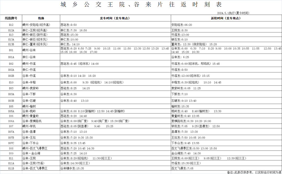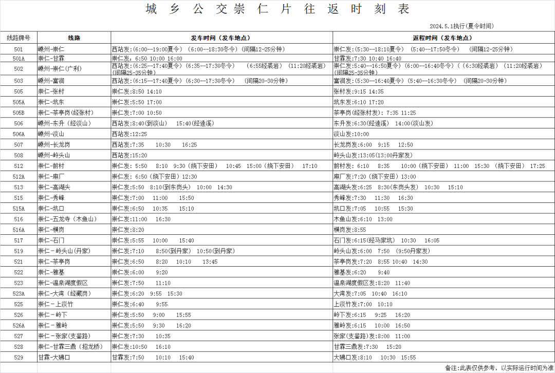 從長運城鄉(xiāng)公交獲悉,5月1日起,我市城鄉(xiāng)公交將實行夏令時刻表,發(fā)車時間和返程時間有變化,具體如下: