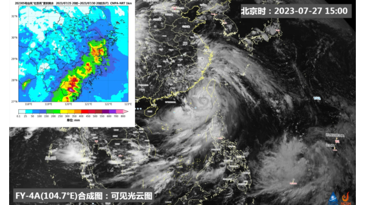 臺(tái)風(fēng)“杜蘇芮”可見光云圖及臺(tái)風(fēng)過程累計(jì)降水