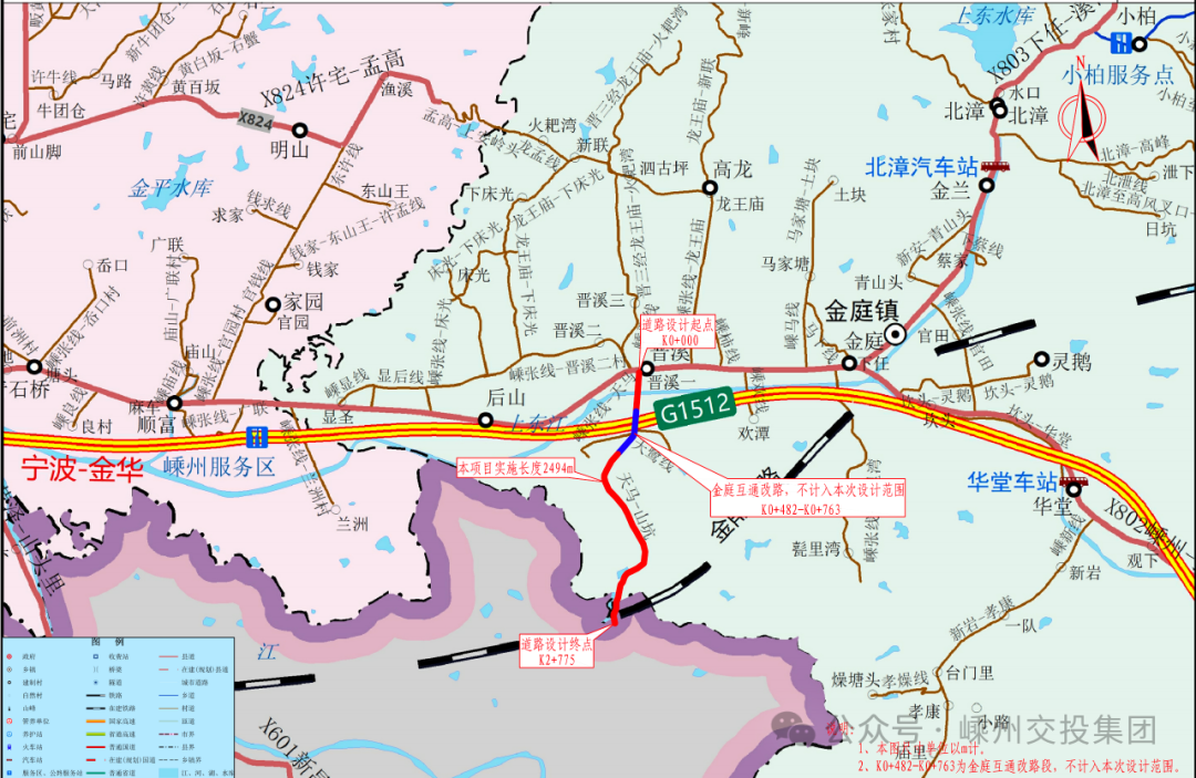 項(xiàng)目位于金庭鎮(zhèn),起點(diǎn)與嵊張線(X802)K10+100處平面相交,樁號(hào)為K0+000,終點(diǎn)位于山坑(縣界),樁號(hào)為K2+775,本項(xiàng)目實(shí)施路線全長(zhǎng)2.494千米,已扣除K0+482-K0+763段金庭互通改路范圍,本次設(shè)計(jì)對(duì)路面進(jìn)行改建,實(shí)施后路基寬度6.0米,路面寬度5.0米。路面結(jié)構(gòu)為瀝青砼路面。完善沿線交通安全設(shè)施及其他附屬工程。