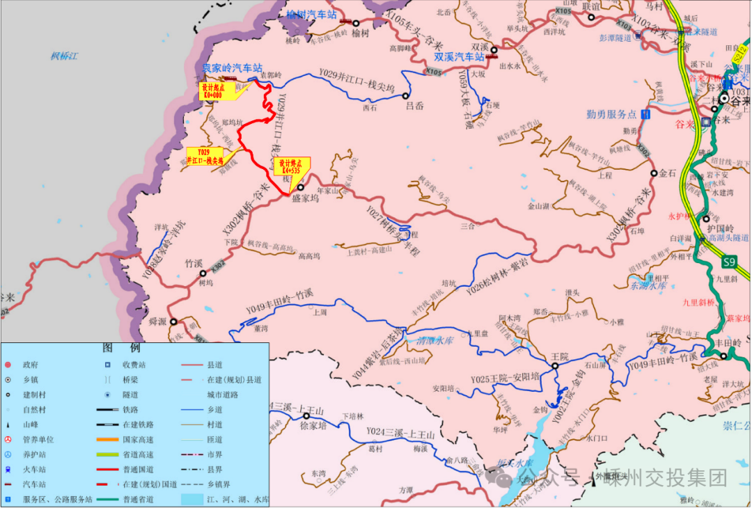 項(xiàng)目位于谷來(lái)鎮(zhèn),起點(diǎn)位于棧并線(K8+961)處,起點(diǎn)樁號(hào)為K0+000,路線終點(diǎn)樁號(hào)為K4+535,與現(xiàn)狀楓谷線瀝青路T字相交,項(xiàng)目全長(zhǎng)4.535千米。本次設(shè)計(jì)對(duì)路面進(jìn)行改建。實(shí)施后路基寬度6.0-7.0米,路面寬5.0-6.0米,路面結(jié)構(gòu)為瀝青砼路面。完善沿線交通安全設(shè)施及其他附屬工程。