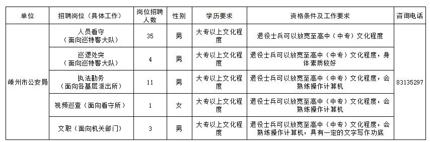 3.大專以上文化程度;退役士兵可放寬至高中(中專)學(xué)歷;