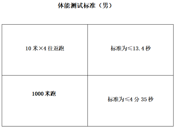 報(bào)名通過的人員,考生攜帶身份證參加體能測(cè)試(標(biāo)準(zhǔn)詳見附件2),體能測(cè)試工作由嵊州市公安局組織實(shí)施,體能測(cè)試合格的人員參加筆試。