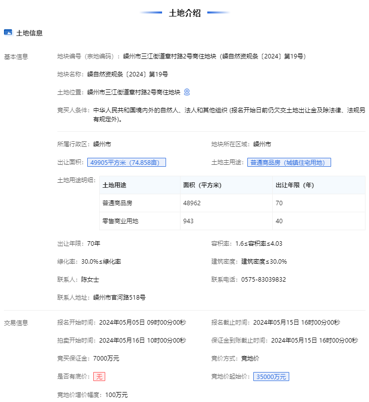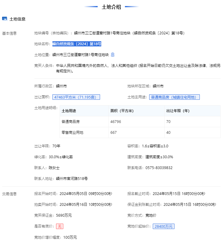 嵊州市三江街道章村路1號、2號商住地塊于今日10點正式開拍,1號地塊起拍總價28400萬元,2號地塊起拍總價35000萬元。