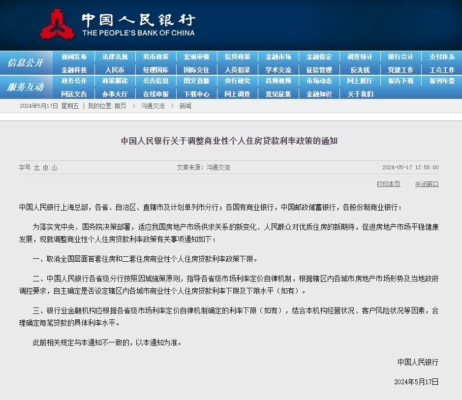中國人民銀行就調(diào)整商業(yè)性個人住房貸款利率政策有關(guān)事項通知如下: