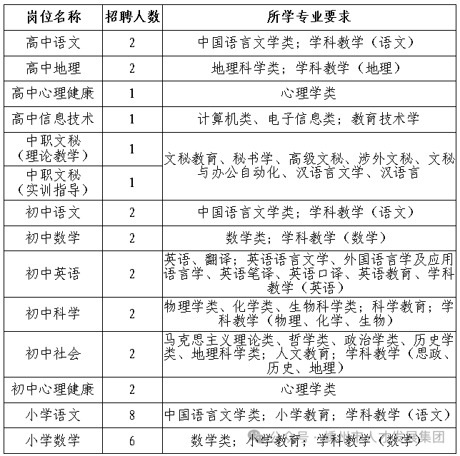 中職文秘(理論教學(xué))崗位須符合專業(yè)要求且須具備高中教師資格證書(shū)或師范生教師職業(yè)能力證書(shū)或高中教師資格考試合格證明;中職文秘(實(shí)訓(xùn)指導(dǎo))須符合專業(yè)要求,沒(méi)有教師資格證的可以報(bào)考,但須在聘用后兩年內(nèi)取得相應(yīng)教師資格證書(shū)。