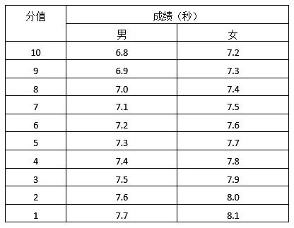 (二)女子測(cè)試項(xiàng)目評(píng)分表: