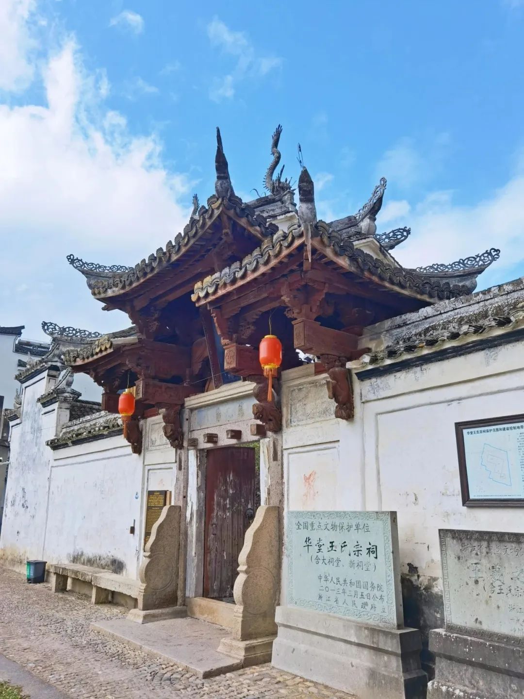 華堂村中有全國重點文物保護單位王氏宗祠,莊嚴典雅又獨具江南建筑風格十分惹眼。它建于明正德七年(1512),迄今已480余年歷史,是嵊縣現(xiàn)存最古老的建筑之一。