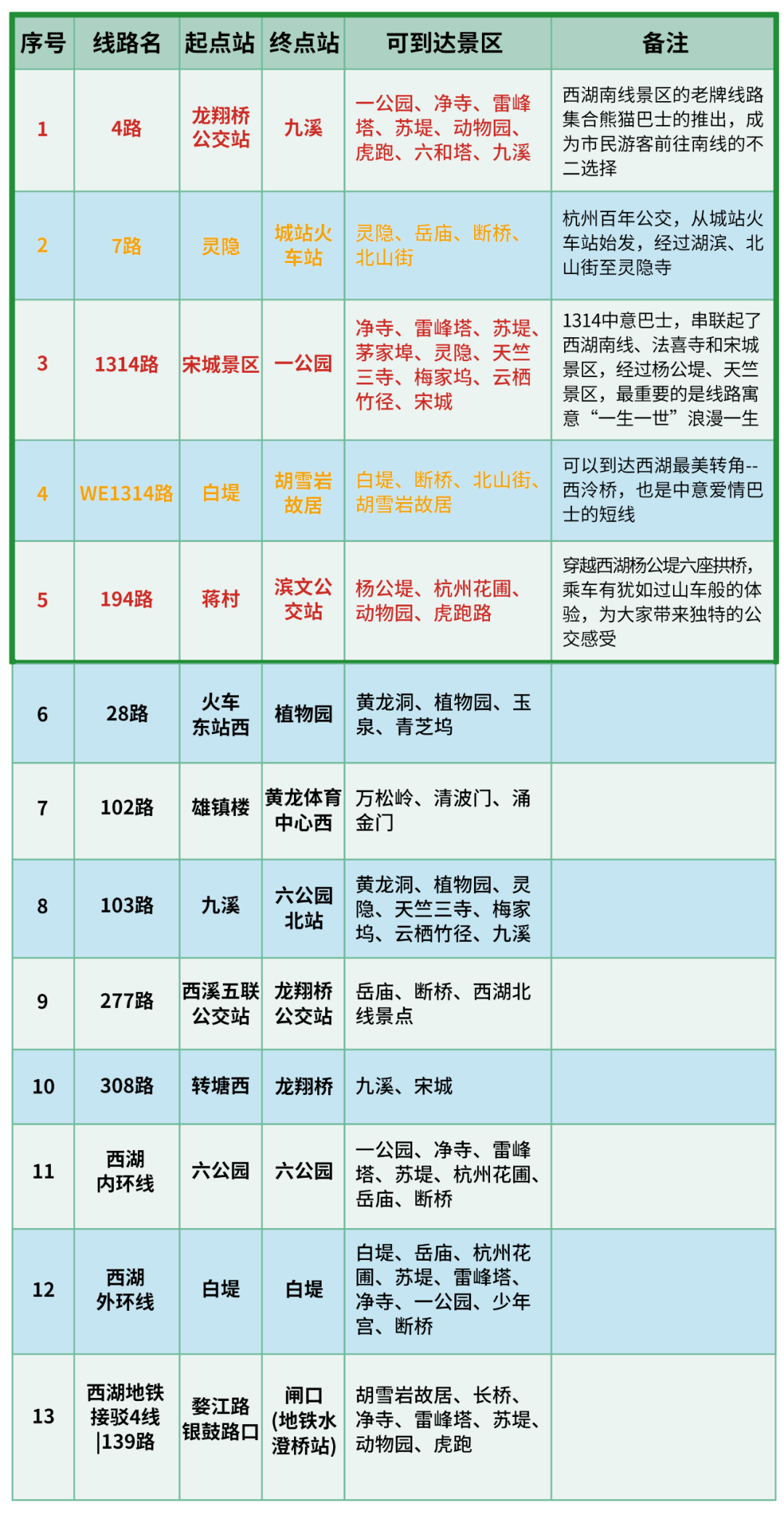 2. 西湖景區(qū)周邊10個(gè)地鐵站都有公交接駁線。我們?cè)谖骱皡^(qū)周邊10個(gè)地鐵站都開通了公交接駁線,帶您直達(dá)15個(gè)主要景點(diǎn)。