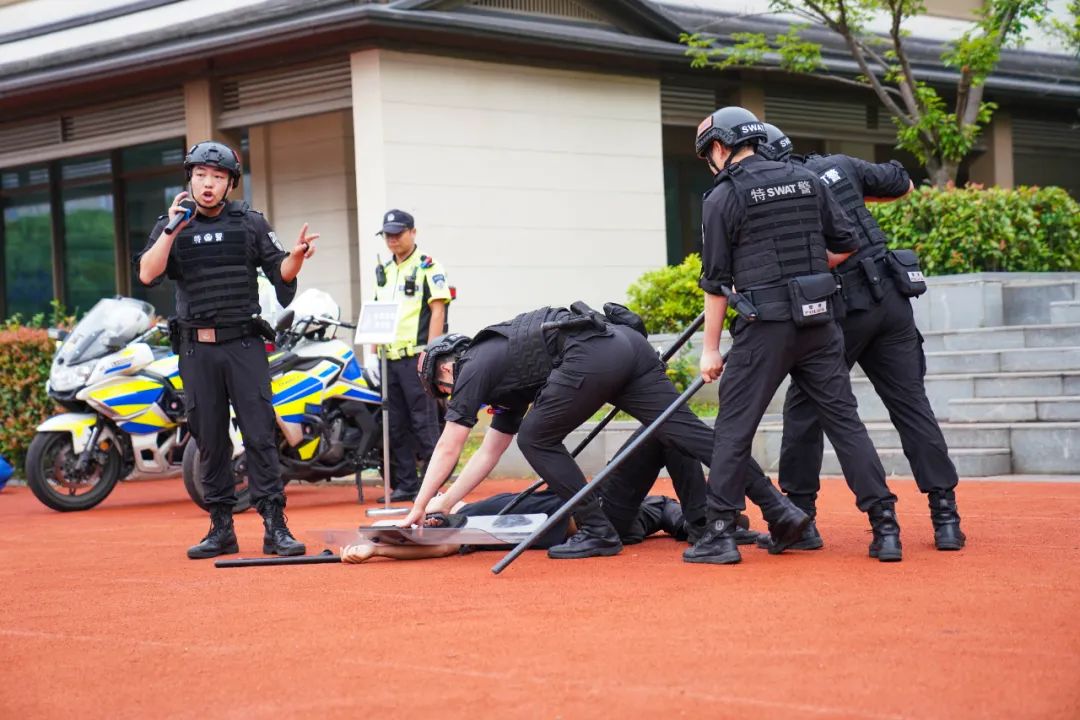 特警隊員用盾牌、鋼叉不斷交替掩護