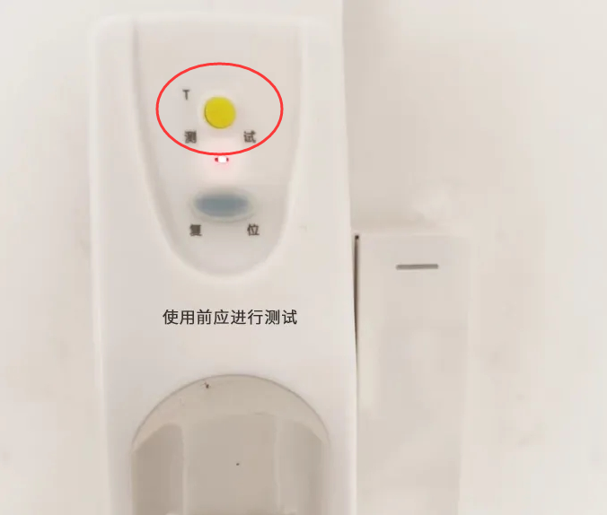 戴上橡膠手套,先按下測試鍵(T)看指示燈有沒有熄滅,再按復(fù)位鍵(R)看指示燈有沒有亮。