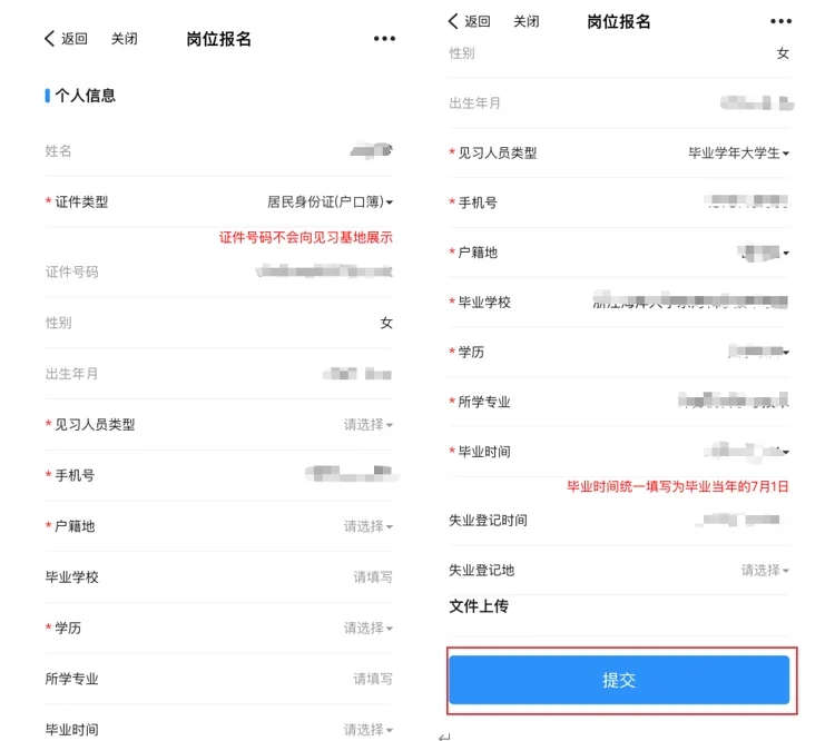 在“見習(xí)崗位查詢”中,點(diǎn)擊崗位可進(jìn)入見習(xí)崗位詳情頁面,查看專業(yè)、學(xué)歷、見習(xí)內(nèi)容等崗位具體信息,點(diǎn)擊下方“崗位報(bào)名”,填寫個(gè)人信息后提交,見習(xí)基地將收到報(bào)名信息。