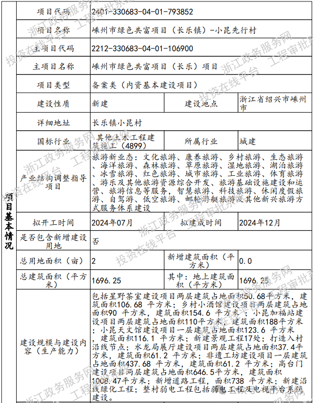 嵊州市綠色共富項目(長樂鎮(zhèn))-小昆先行村,昨日正式備案。
