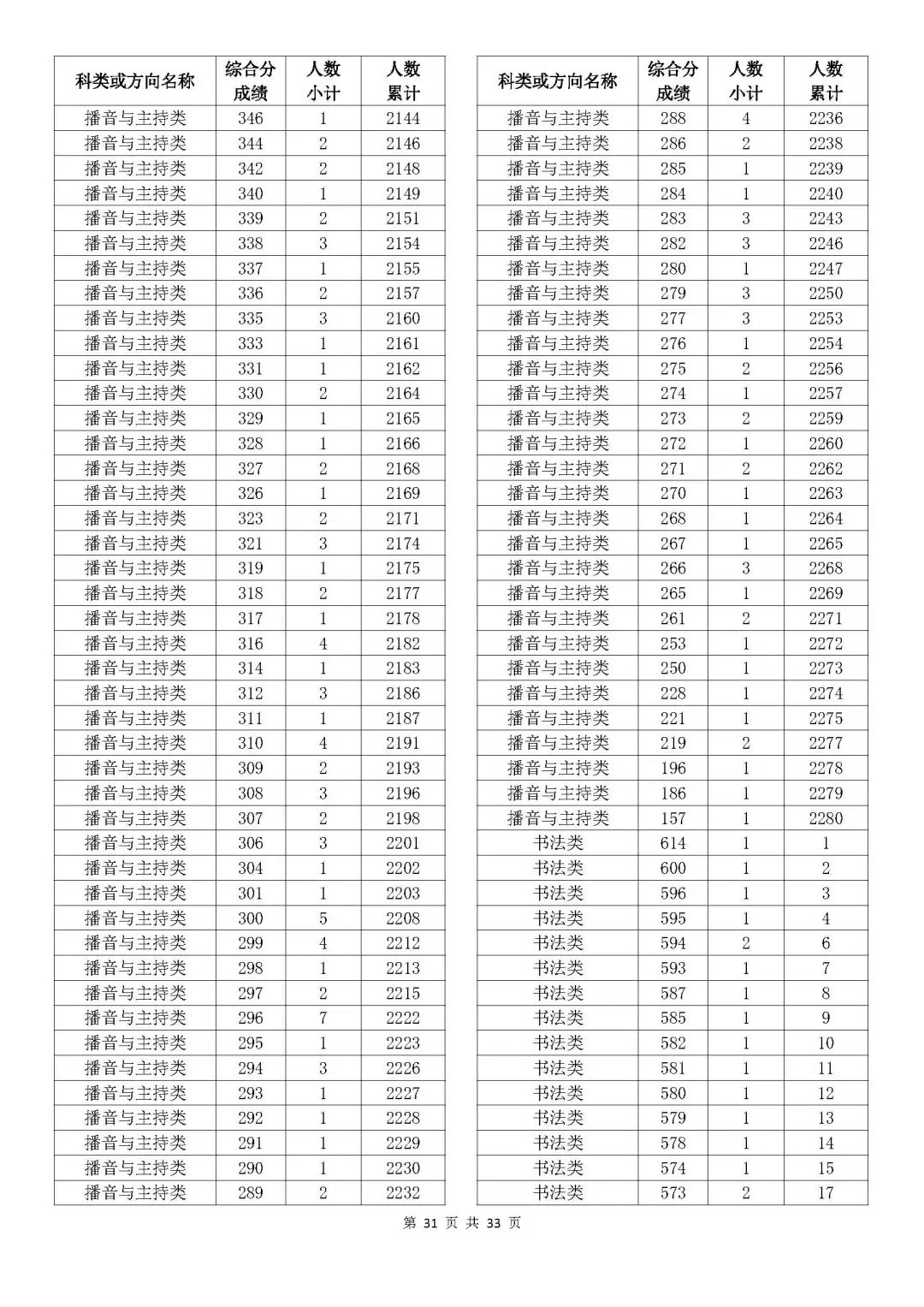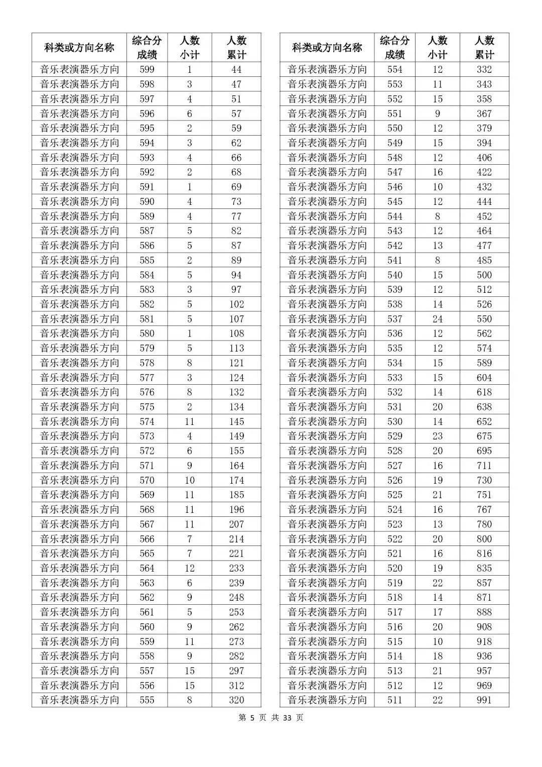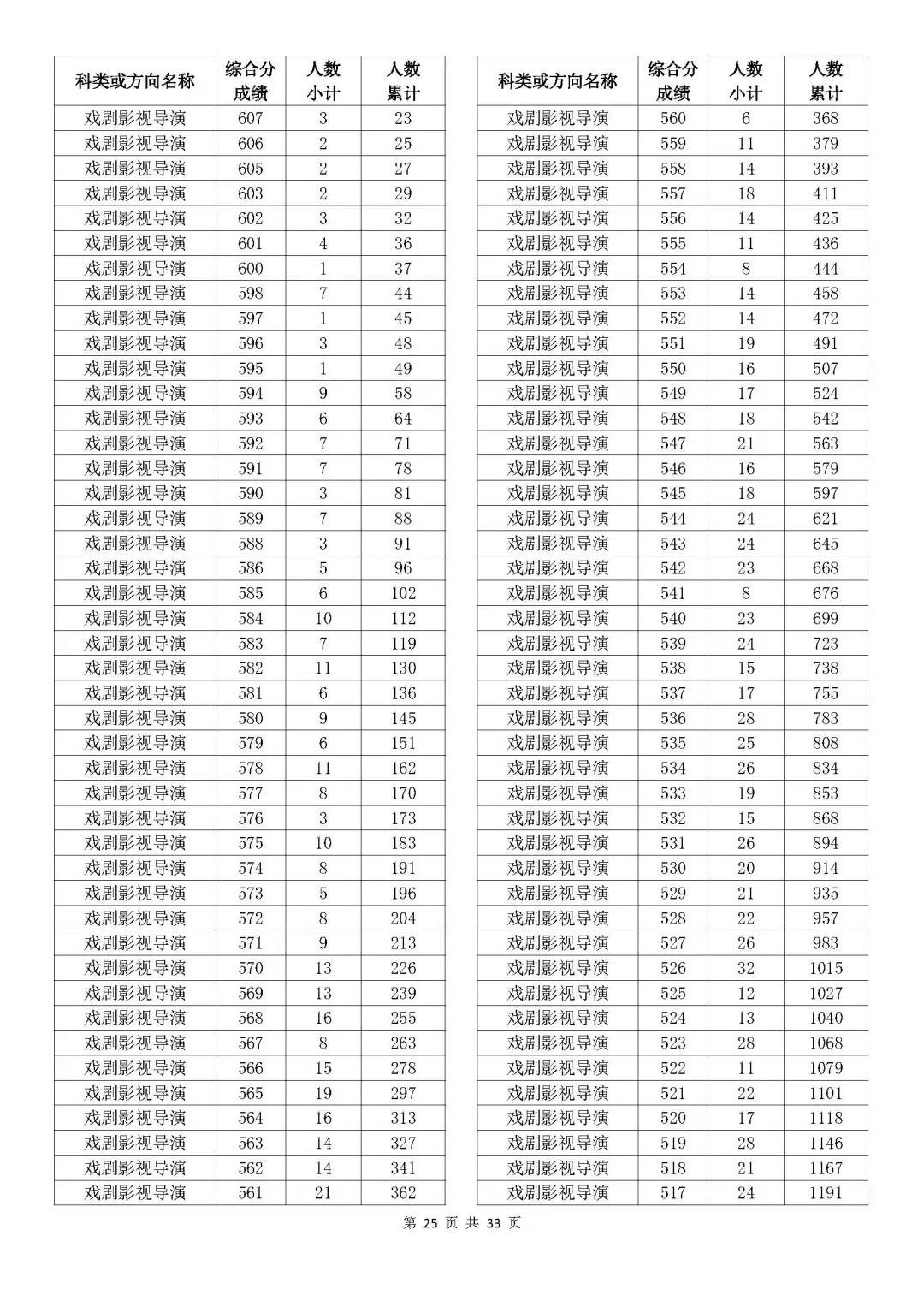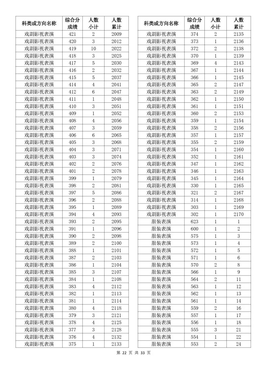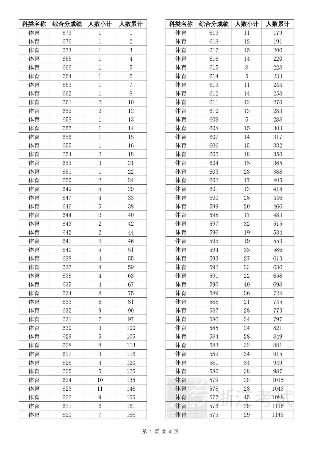 考生綜合分分段表