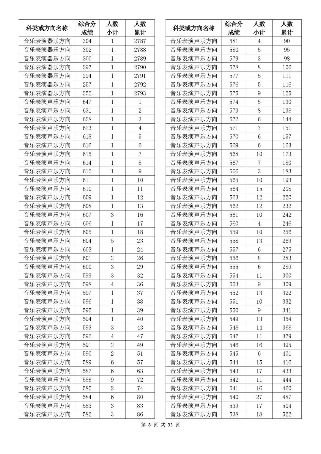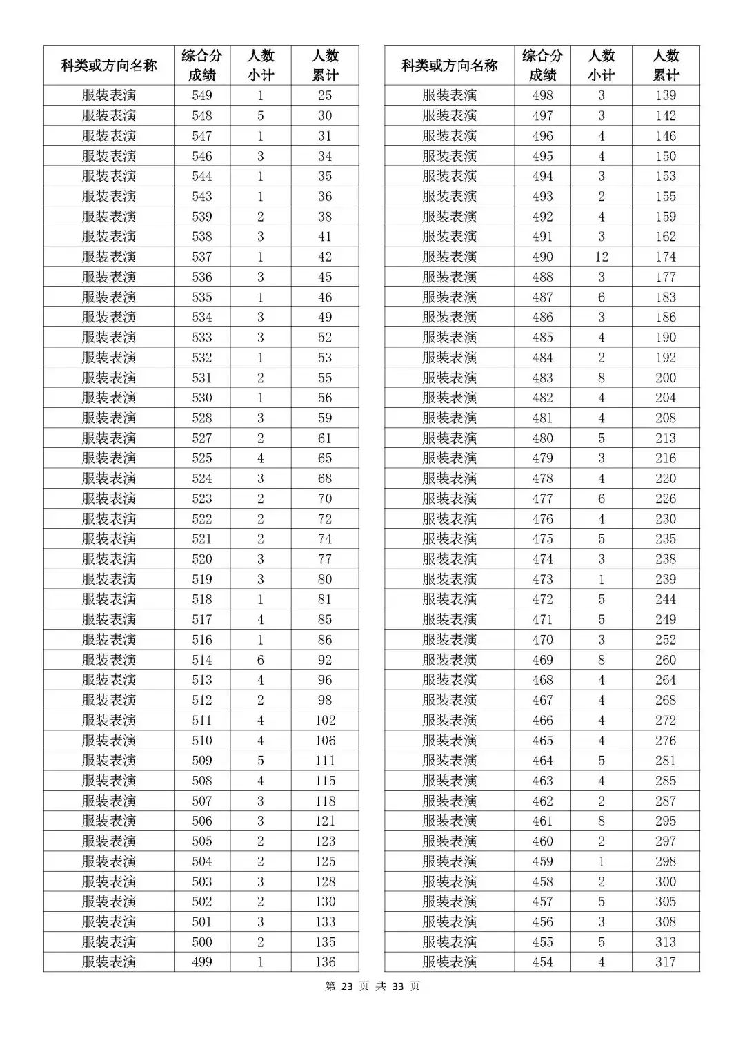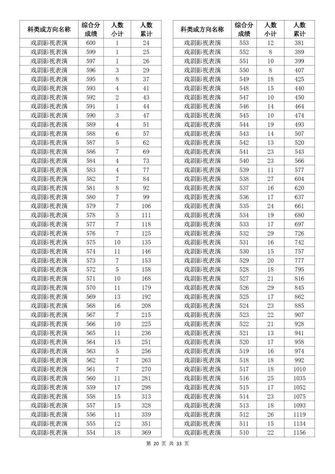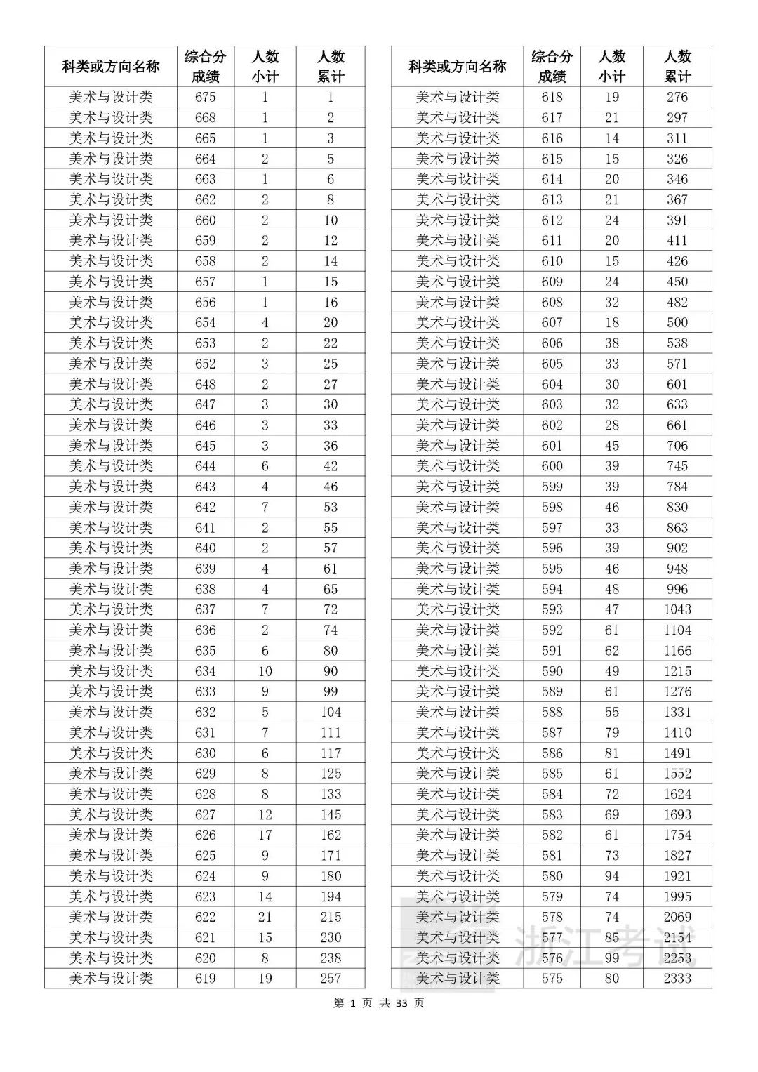 考生綜合分分段表