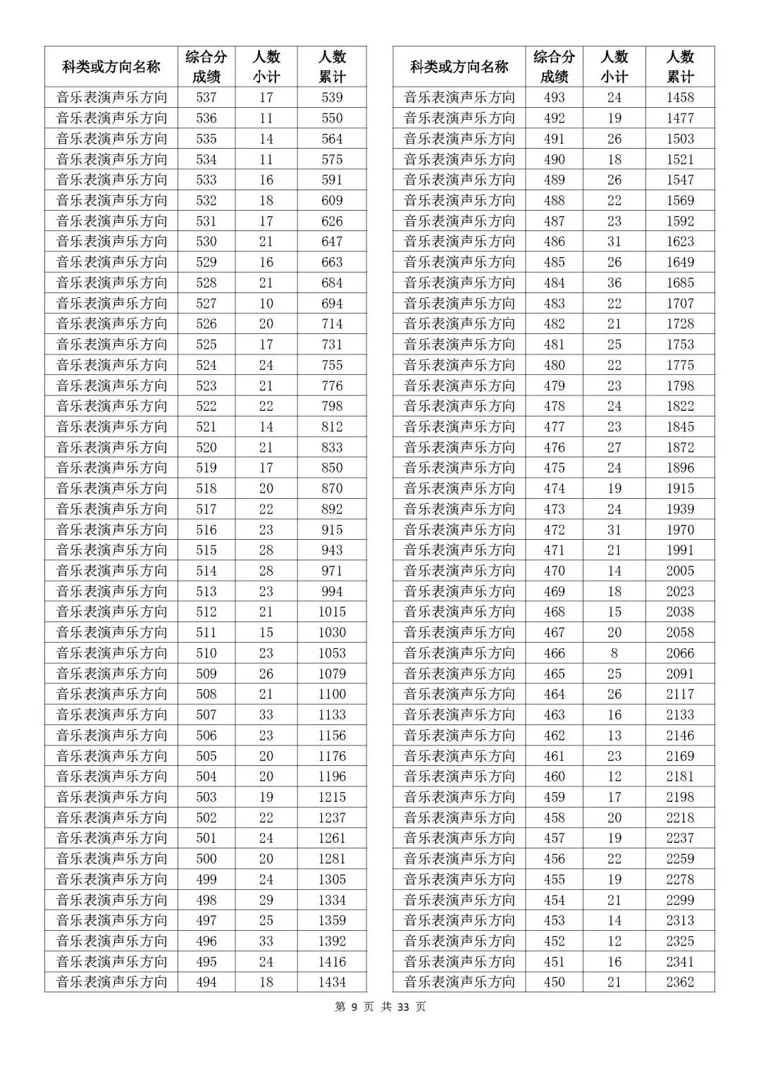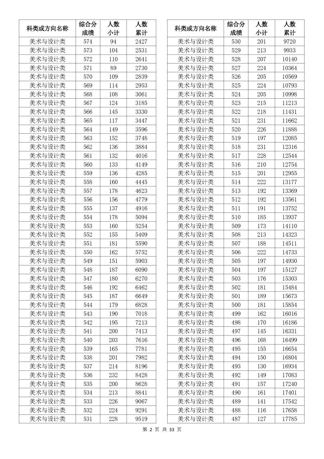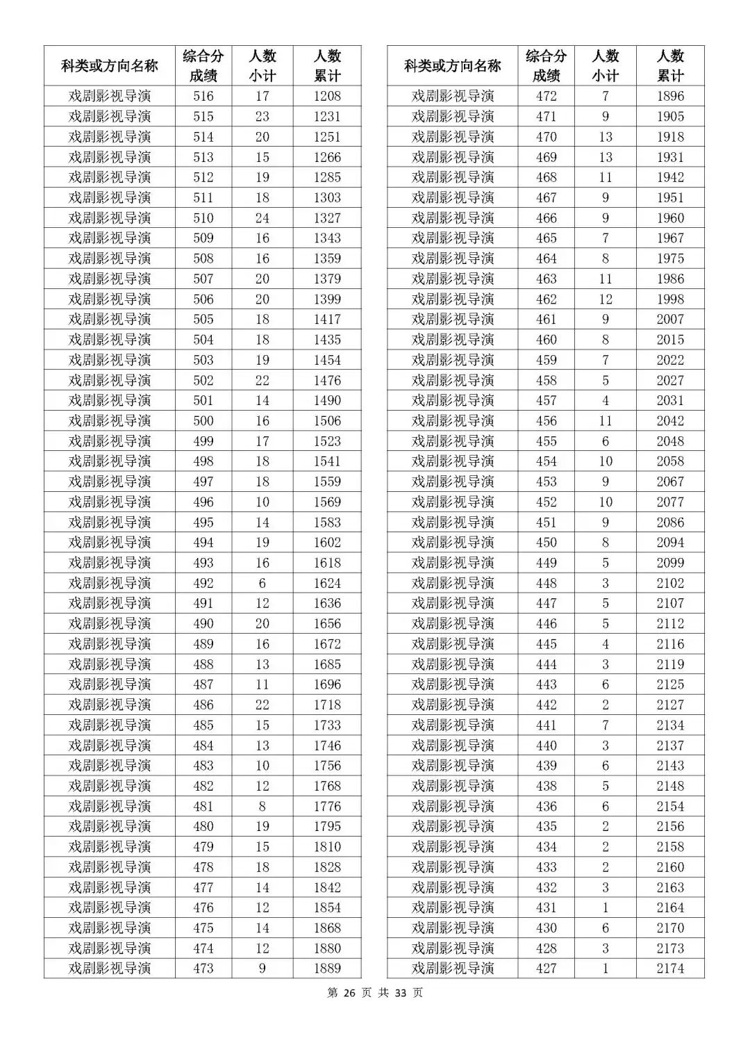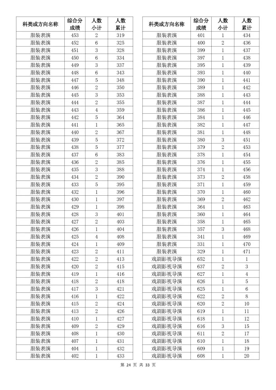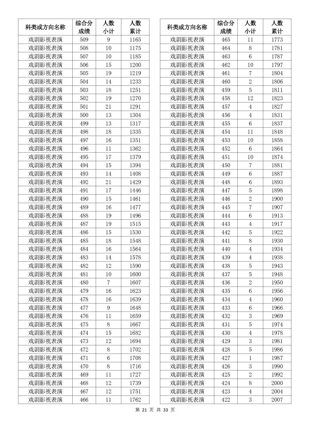 考生綜合分分段表
