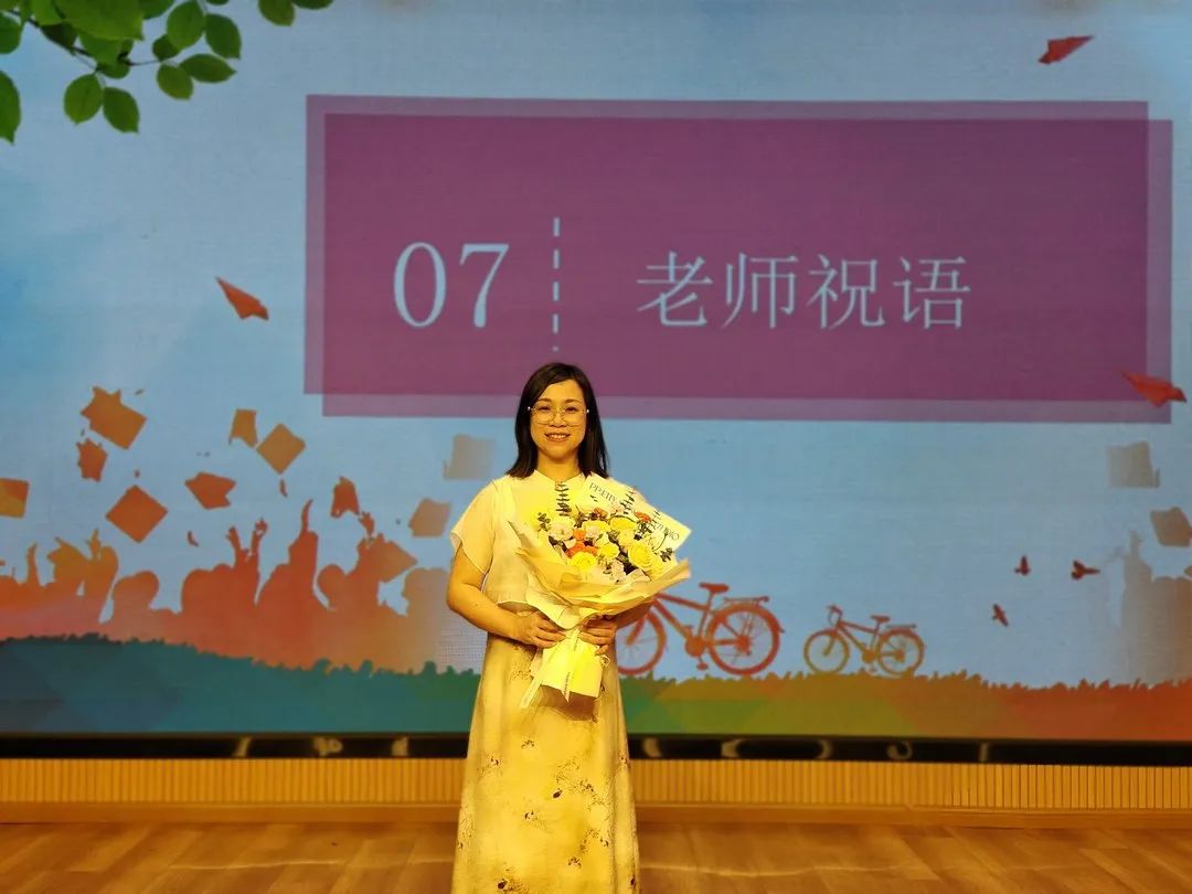 班主任發(fā)表的畢業(yè)贈(zèng)言,讓典禮氣氛達(dá)到了高潮。同學(xué)們也向班主任們送上了鮮花,以表達(dá)深深的謝意。