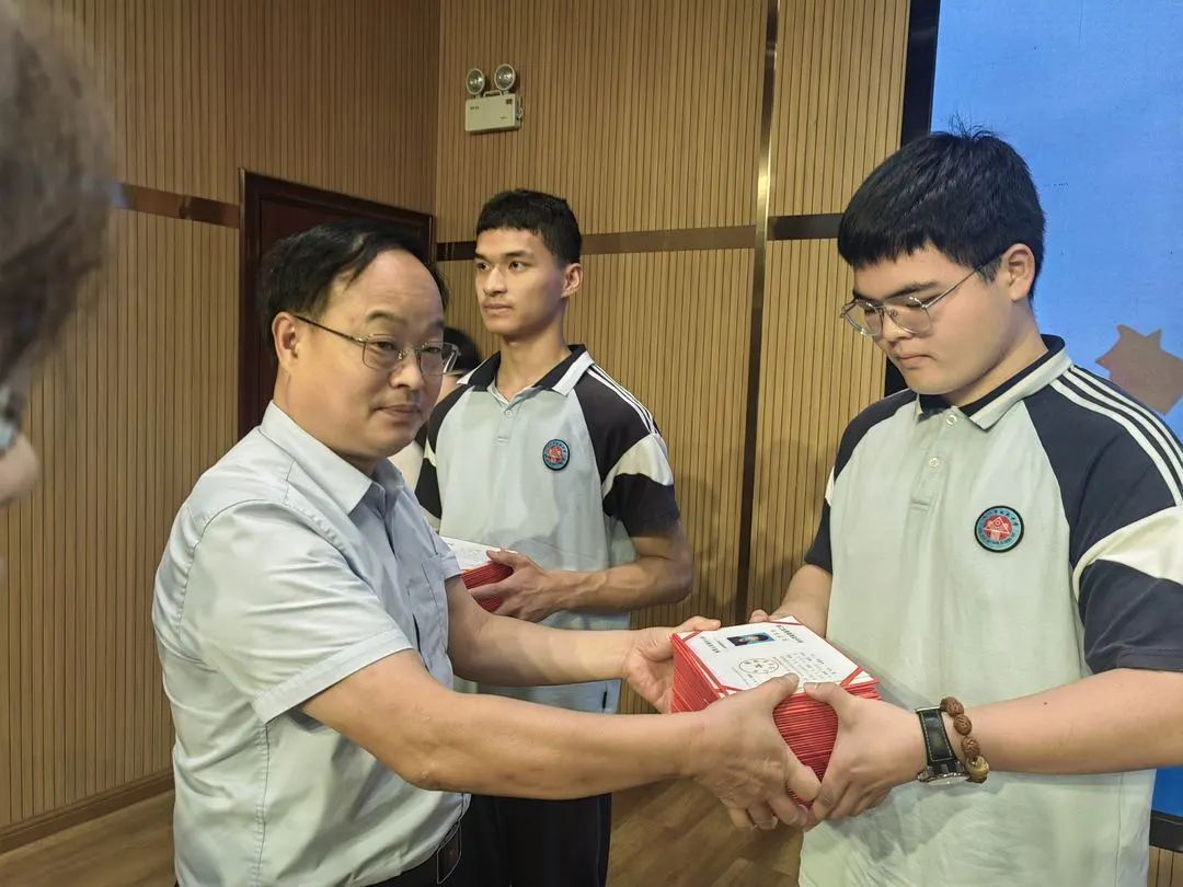 學(xué)校領(lǐng)導(dǎo)向?qū)W生頒發(fā)了畢業(yè)證書(shū)。當(dāng)同學(xué)們接過(guò)沉甸甸的畢業(yè)證書(shū),意味著他們將肩負(fù)更重的責(zé)任。