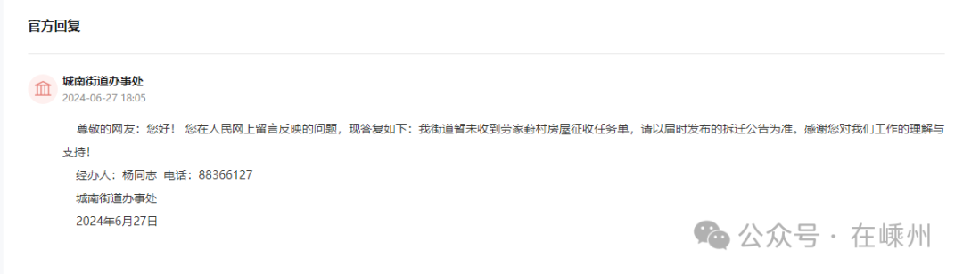 答:我街道暫未收到勞家葑村房屋征收任務(wù)單,請以屆時發(fā)布的拆遷公告為準(zhǔn)。感謝您對我們工作的理解與支持!