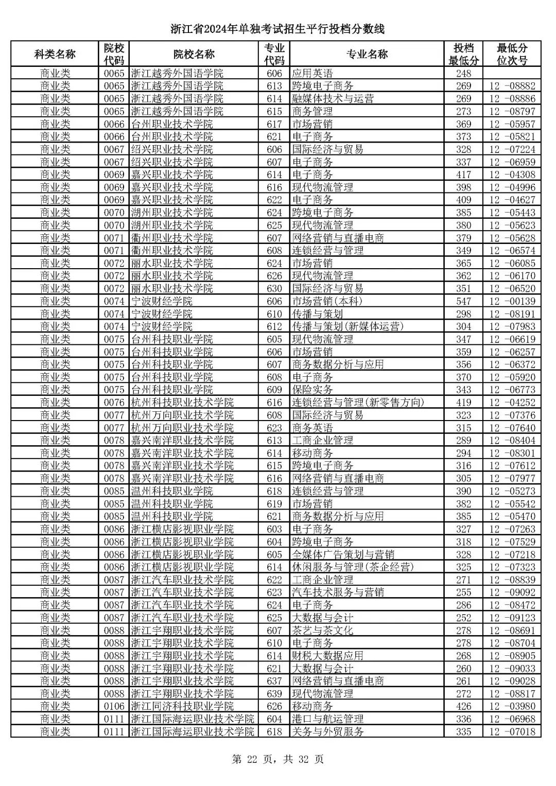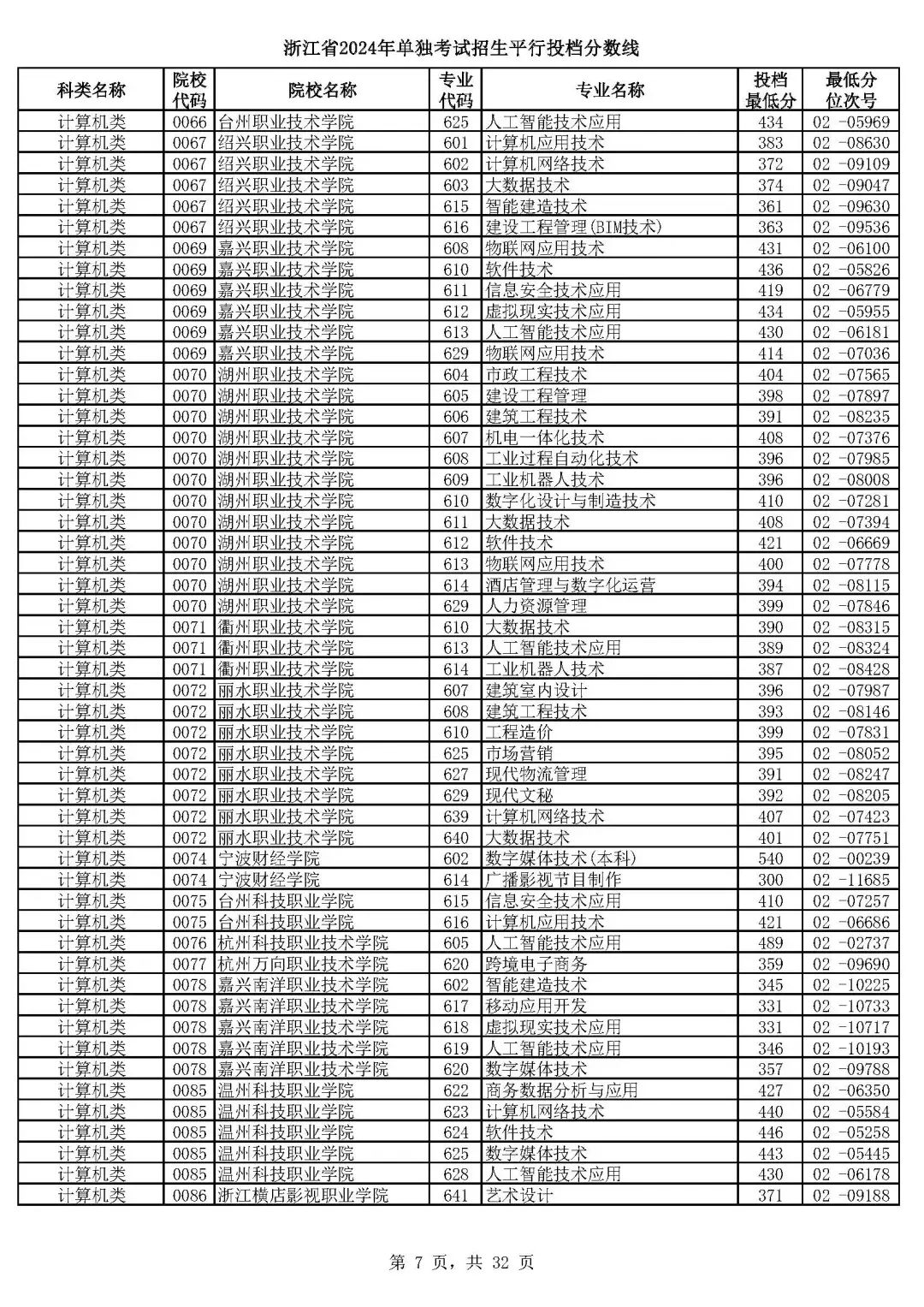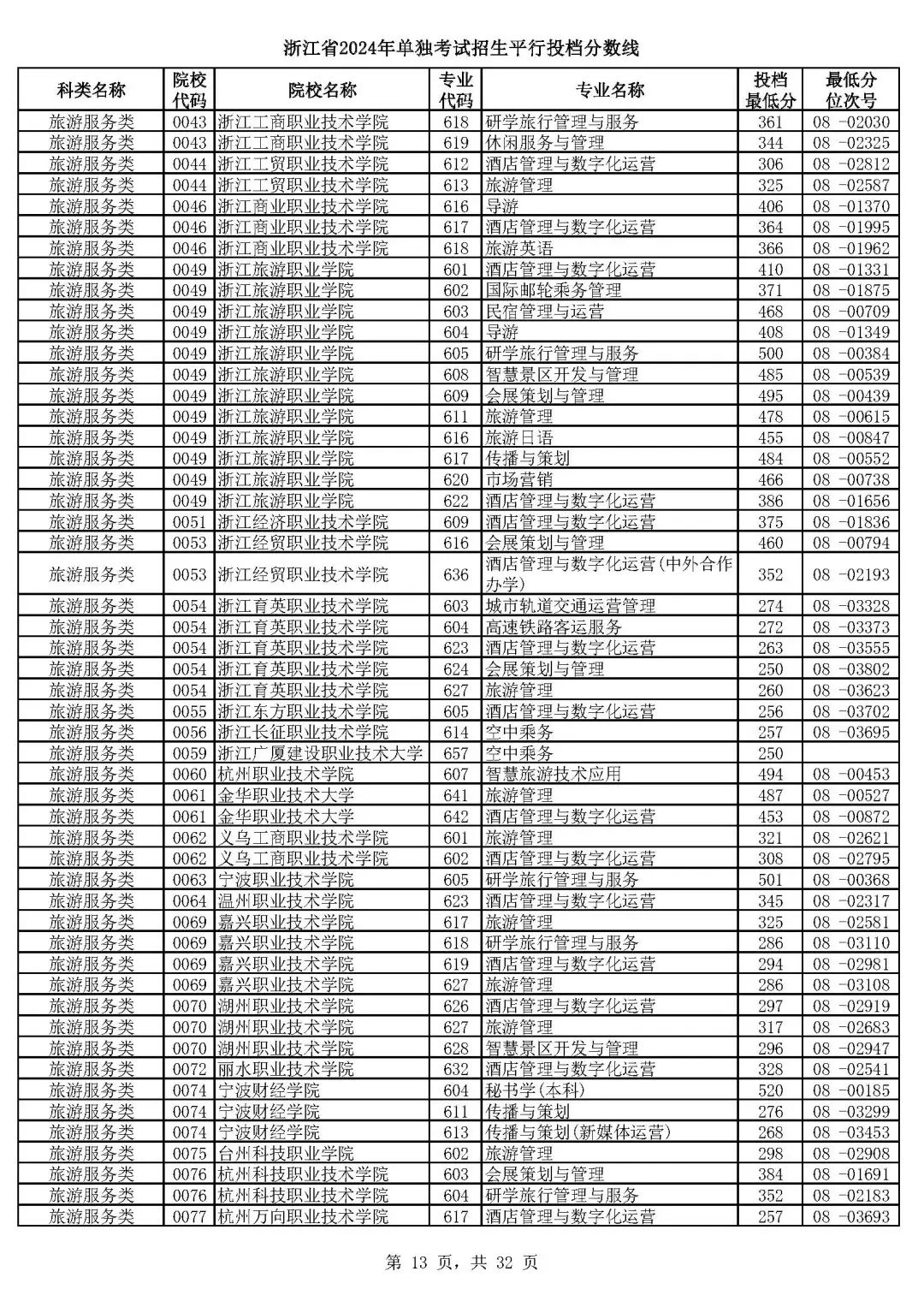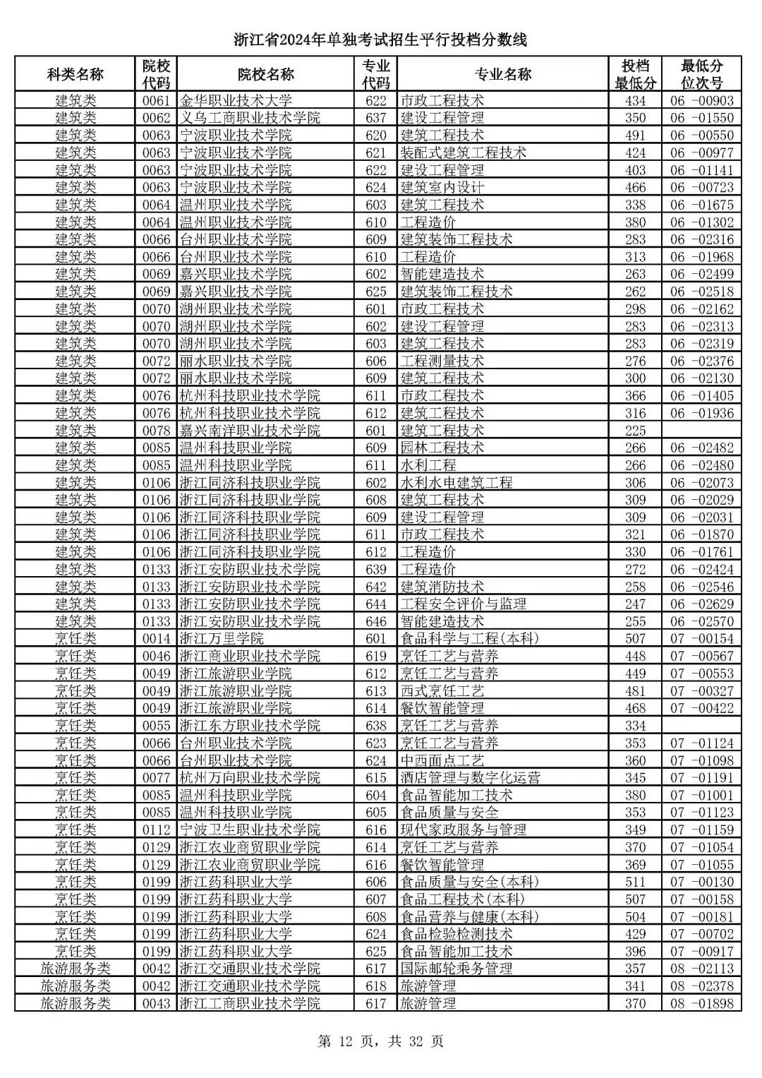 今天,浙江省2024年單獨(dú)考試招生平行志愿投檔??忌刹殚喐黝?lèi)別專(zhuān)業(yè)投檔分?jǐn)?shù)線和位次號(hào),對(duì)照自己所填報(bào)的志愿,預(yù)估目前可能投檔的高校和專(zhuān)業(yè)。本次投檔后,預(yù)計(jì)考生可于7月7日晚通過(guò)浙江省教育考試院網(wǎng)站(www.zjzs.net)或“浙江考試”微信公眾號(hào)查詢(xún)相關(guān)錄取情況。