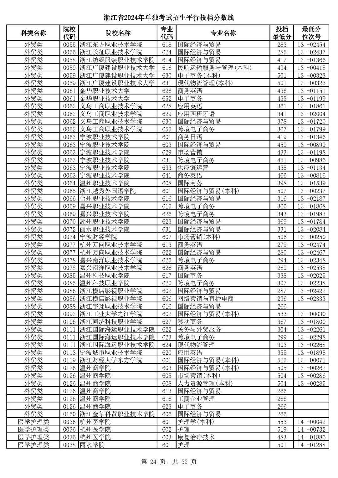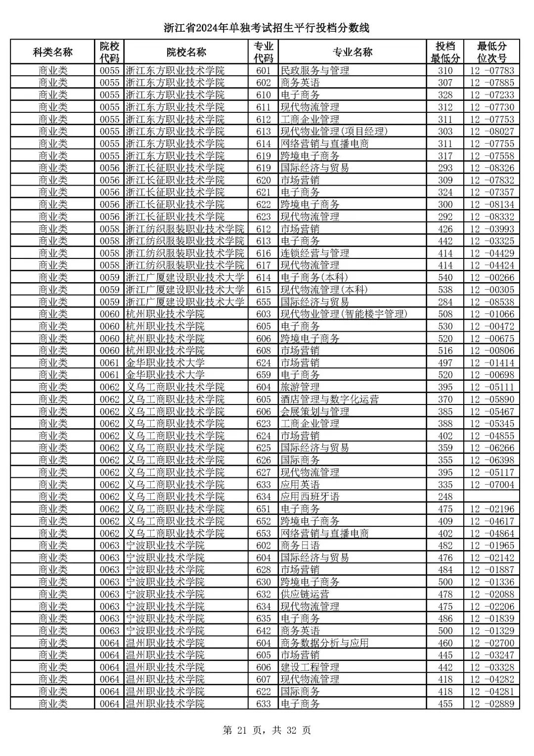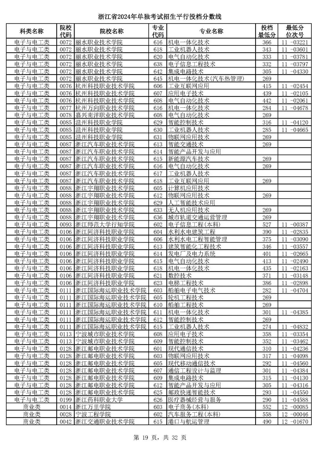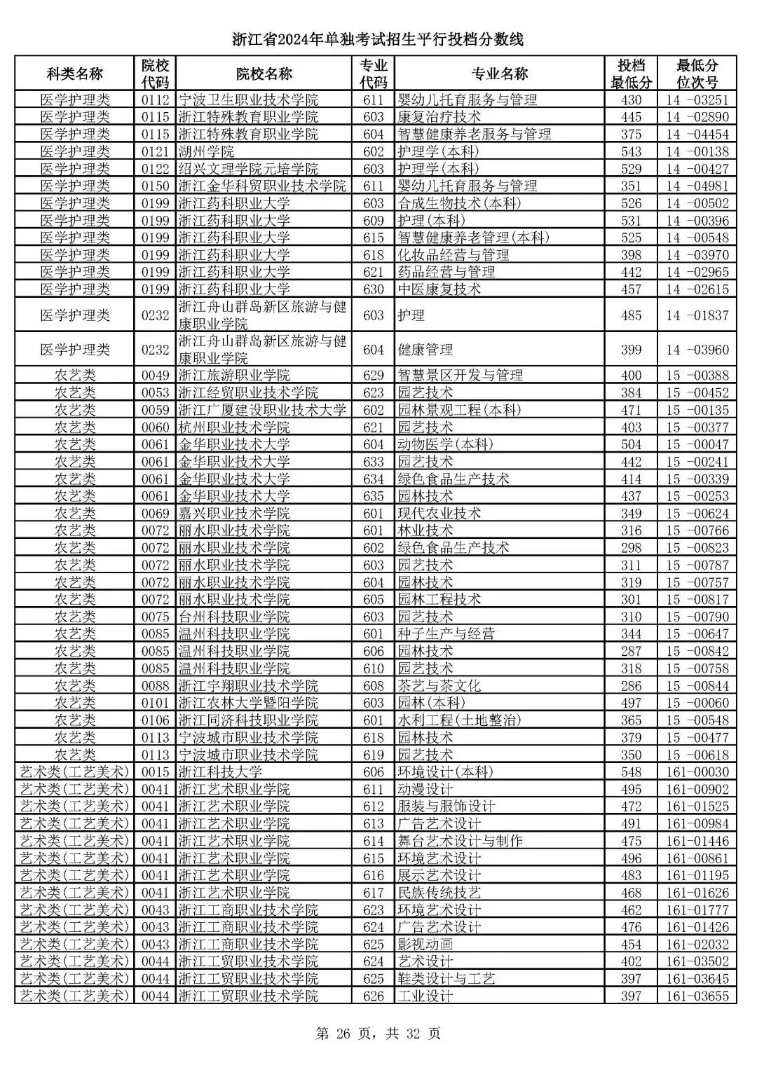 今天,浙江省2024年單獨(dú)考試招生平行志愿投檔??忌刹殚喐黝?lèi)別專(zhuān)業(yè)投檔分?jǐn)?shù)線和位次號(hào),對(duì)照自己所填報(bào)的志愿,預(yù)估目前可能投檔的高校和專(zhuān)業(yè)。本次投檔后,預(yù)計(jì)考生可于7月7日晚通過(guò)浙江省教育考試院網(wǎng)站(www.zjzs.net)或“浙江考試”微信公眾號(hào)查詢(xún)相關(guān)錄取情況。
