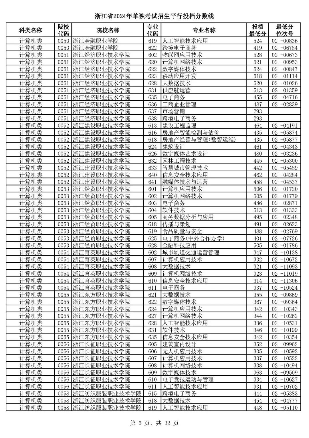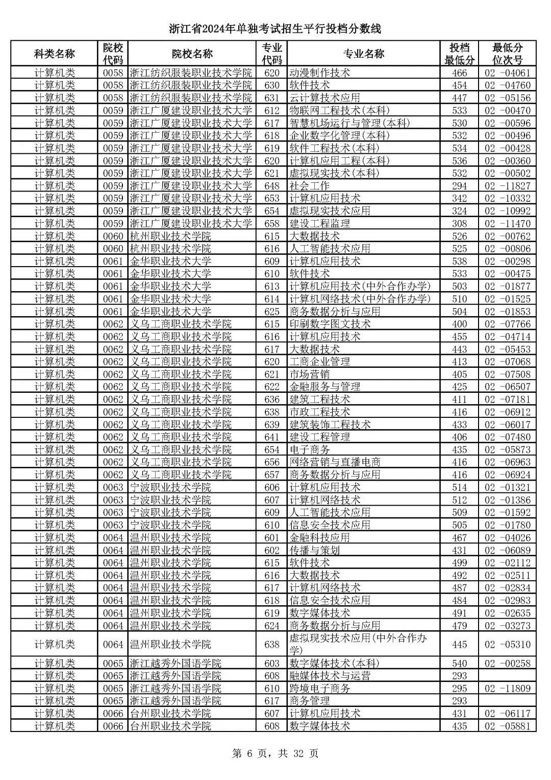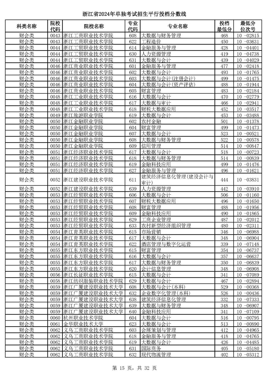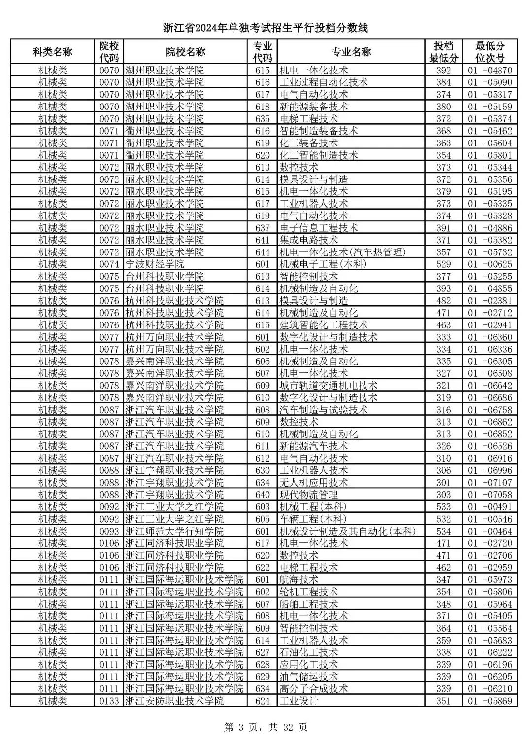 今天,浙江省2024年單獨(dú)考試招生平行志愿投檔??忌刹殚喐黝?lèi)別專(zhuān)業(yè)投檔分?jǐn)?shù)線和位次號(hào),對(duì)照自己所填報(bào)的志愿,預(yù)估目前可能投檔的高校和專(zhuān)業(yè)。本次投檔后,預(yù)計(jì)考生可于7月7日晚通過(guò)浙江省教育考試院網(wǎng)站(www.zjzs.net)或“浙江考試”微信公眾號(hào)查詢(xún)相關(guān)錄取情況。