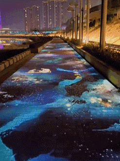 夜晚的小鎮(zhèn),有近百個可自動移動和閃爍的飛行光點組成的草地精靈,模擬夜空中飛舞的螢火蟲,讓游客沉浸在光與自然相互映襯的氛圍中。