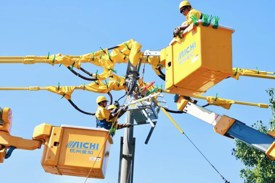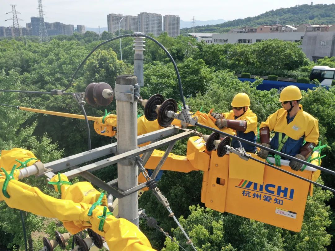 在上虞,電力員工對10千伏哨金線新屯南聯(lián)絡(luò)支線開展智能開關(guān)更換作業(yè),全力保障迎峰度夏期間工業(yè)園區(qū)不間斷用電。