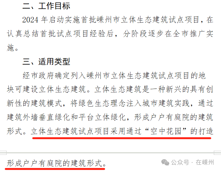 意見中指出2024年啟動(dòng)實(shí)施首批嵊州市立體生態(tài)建筑試點(diǎn)項(xiàng)目,試點(diǎn)項(xiàng)目采用通過“空中花園”的打造形成戶戶有庭院的建筑形式。 結(jié)合之前的土拍規(guī)劃,“空中花園”項(xiàng)目預(yù)計(jì)將落戶城南的嵊州市三江街道章村路1號(hào)、2號(hào)商住地塊。 值得關(guān)注的是,意見中指出空中花園將不計(jì)入建筑面積和容積率。 這也表明新型住宅產(chǎn)品將加量不加價(jià),實(shí)際得房率更高,極具性價(jià)比。 網(wǎng)絡(luò)配圖 附件: